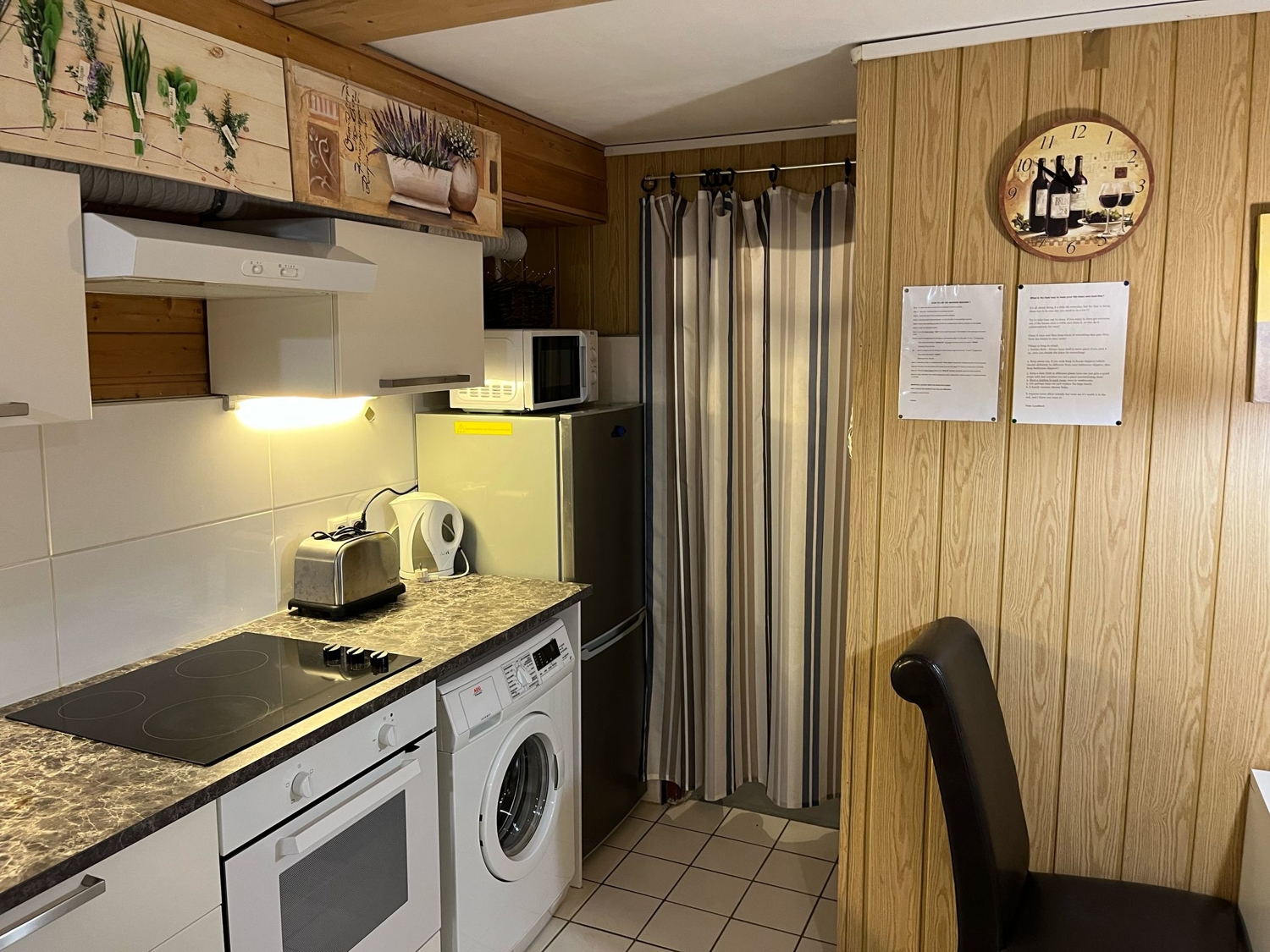 modern and timeless furniture, carpeted and tiled floor, separated kitchenette, bathroom with shower, sat-tv, WiFi internet access, washing machine