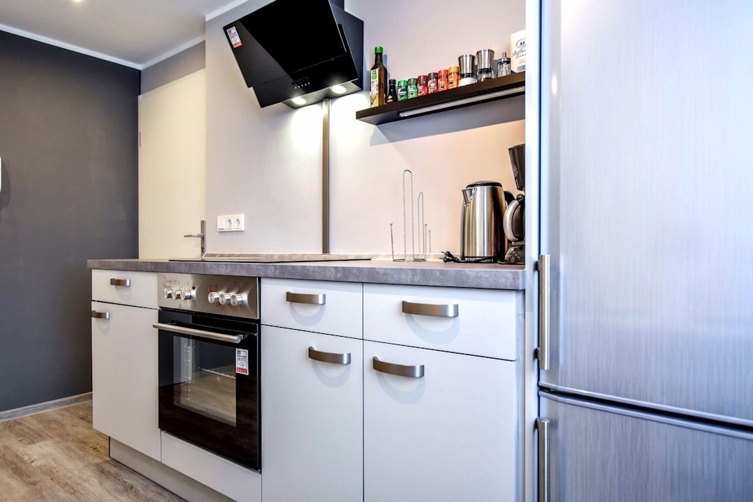 modern furniture, laminate, separated fitted kitchen, daylight bathroom with shower, smart tv, Wifi internet access, soundbar, washing machine in the basement