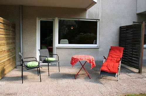 Terrace with chairs, table and sunbed, garden for shared use, bedroom with sofa bed 1.00 m and fold-away bed with topper 1.40 m, internet and telephone incl., pets allowed, smoking allowed, max. 2 people, at a term of lease over 6 months: rent price negotiable, minimum term of lease 3 months