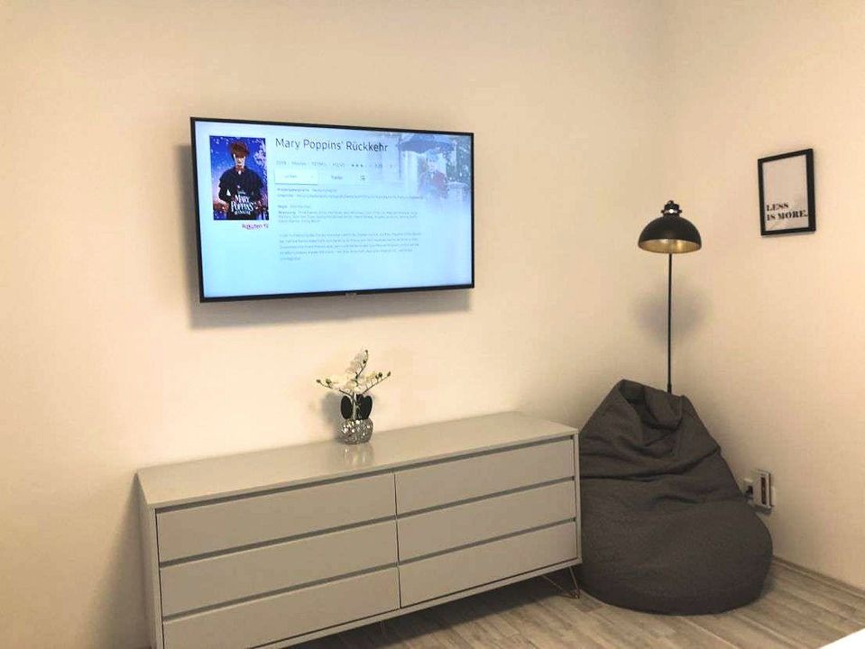 modern and high-quality furniture, wooden floorboards, separate fitted kitchen with induction stove, microwave, fully automatic coffee machine and dishwasher, bathroom with tub, WiFi Internet access with 250 Mbit, storage room in the hallway, own cellar room, washing machine and dryer in the laundry room,