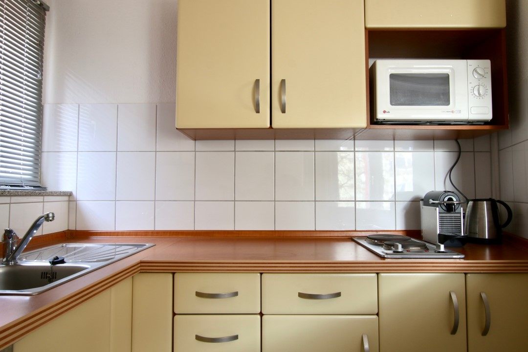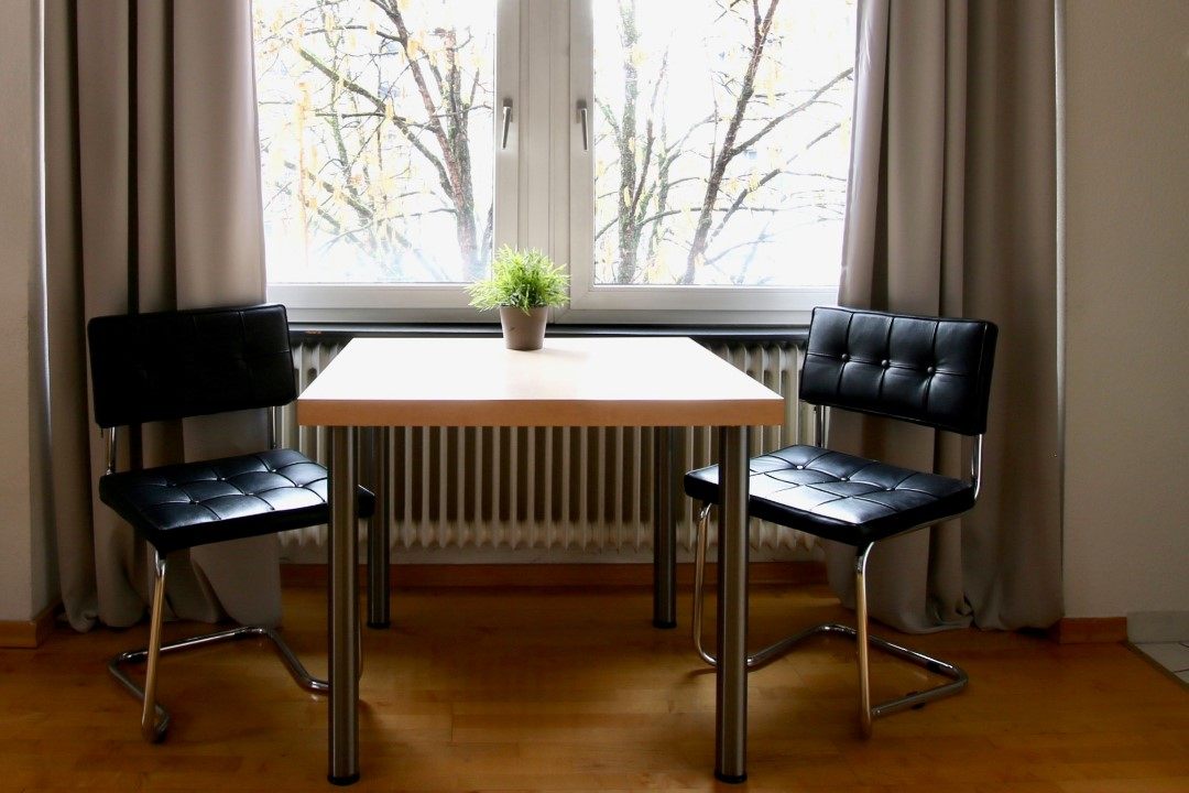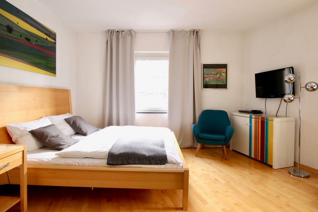 Living/bedroom with queen size bed 1.40 m, change of bed linen and cleaning service on request at an extra charge, DSL WiFi internet access incl., minimum term of lease 2 months, shorter rental period on request, plus final cleaning 180,00 €