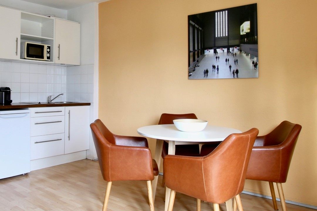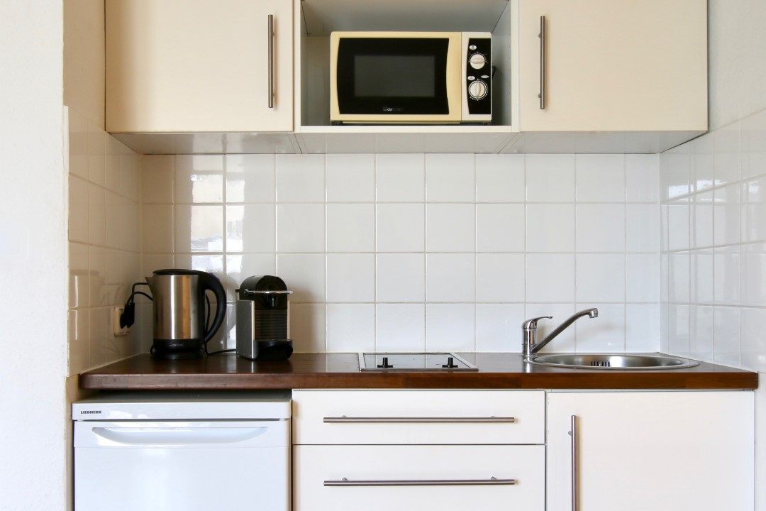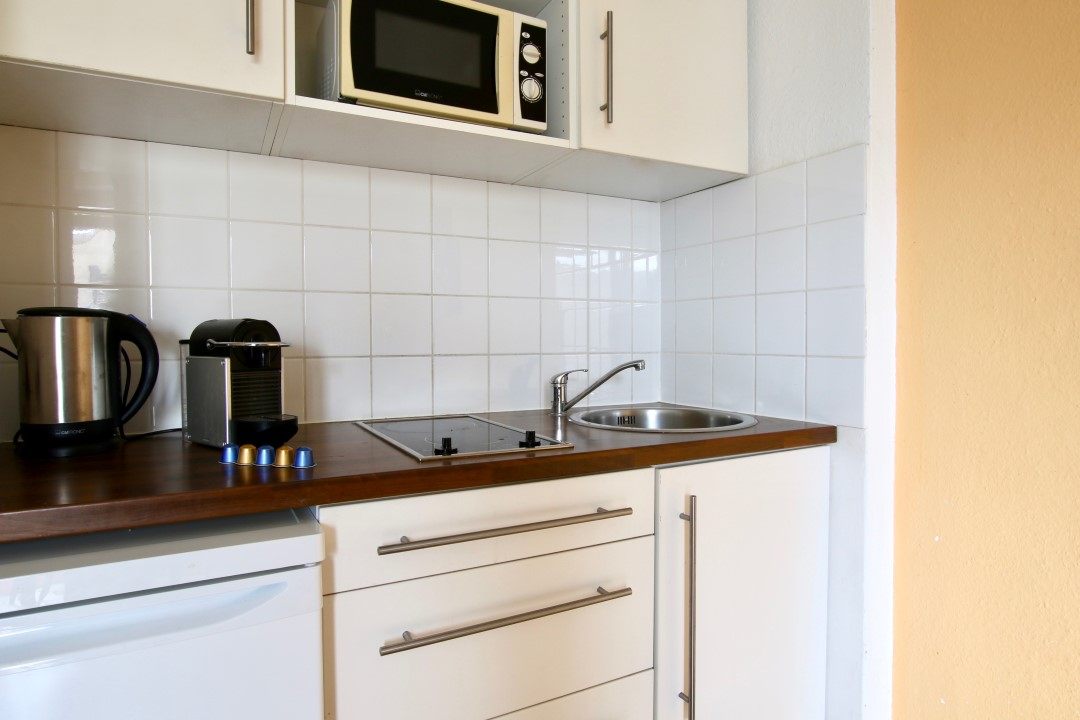 kitchenette with microwave and stove,bathroom with shower, TV, WiFi internet connection- Befeuerung: Fernwärme