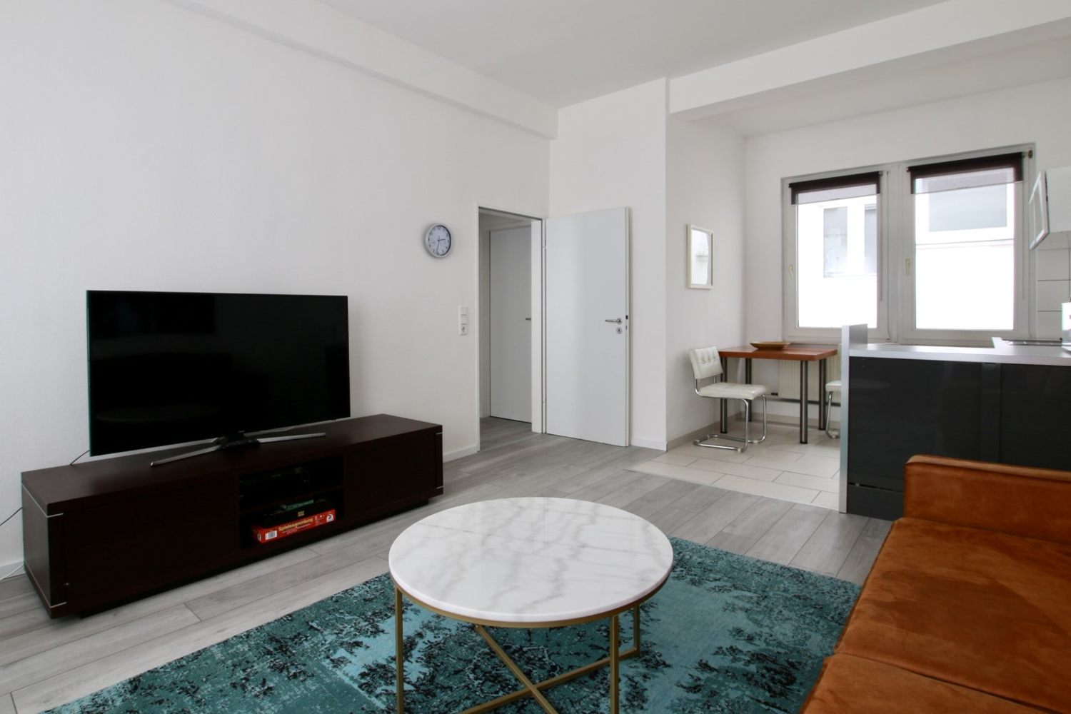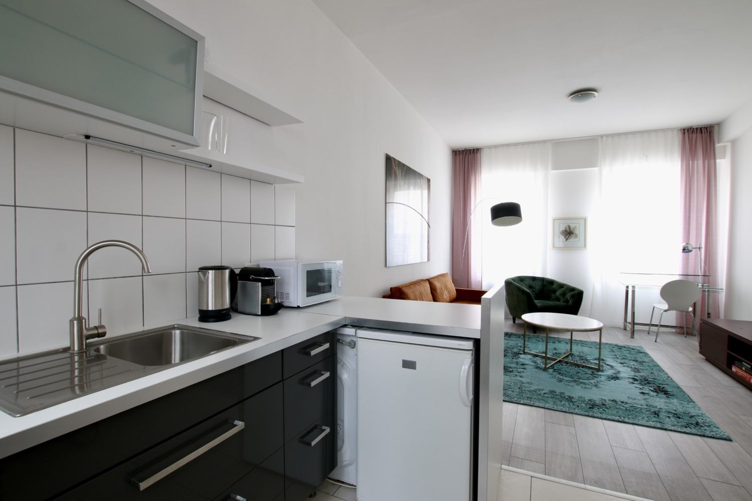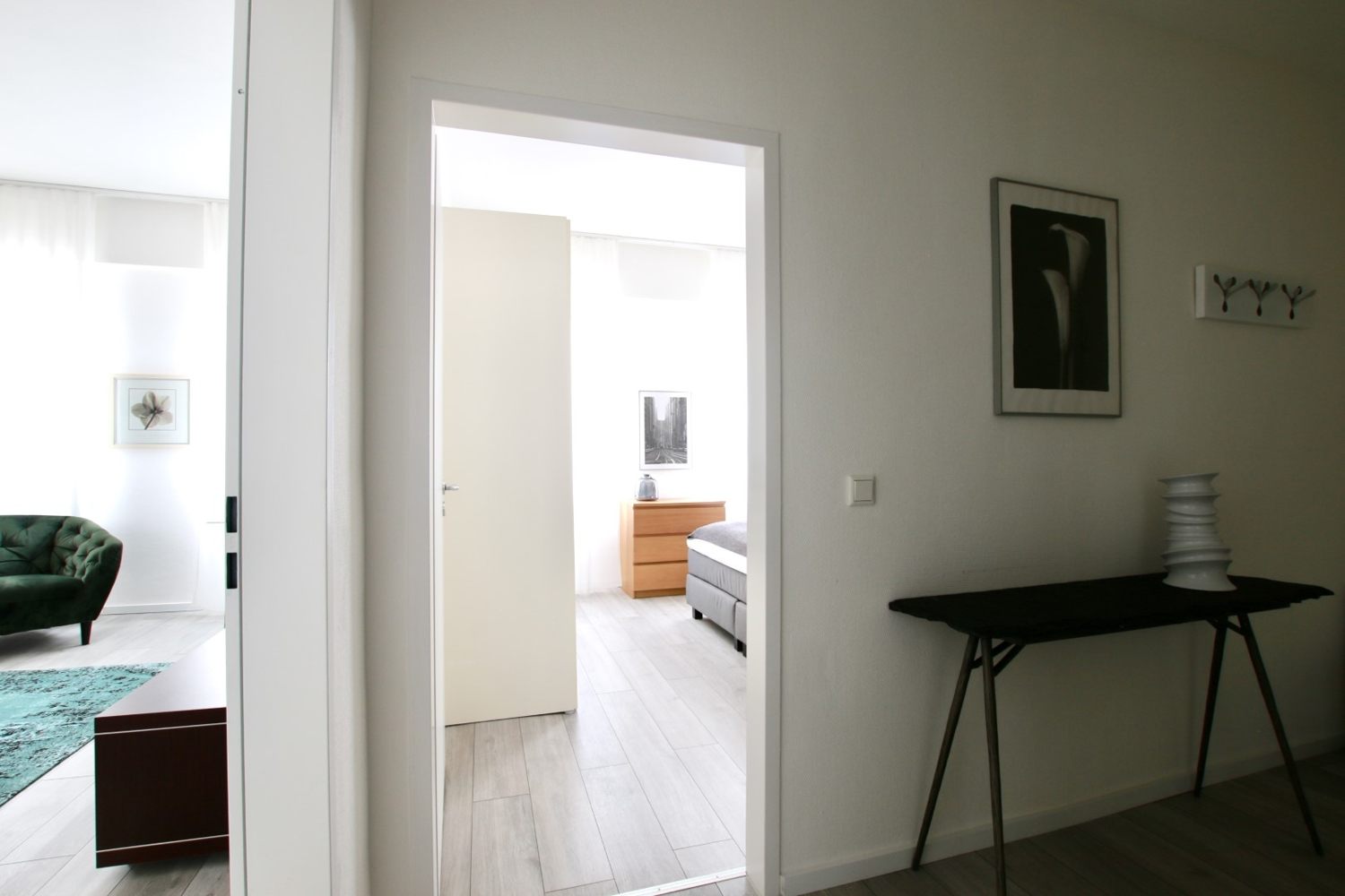 Quiet apartment, living room, bedroom with queen-size bed 1.40 m, WiFi internet connection incl., change of bed linen and cleaning service on request at an extra charge, minimum term of lease 2 months, shorter rental period on request, plus final cleaning 220,00 €