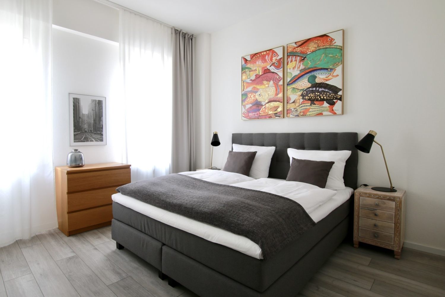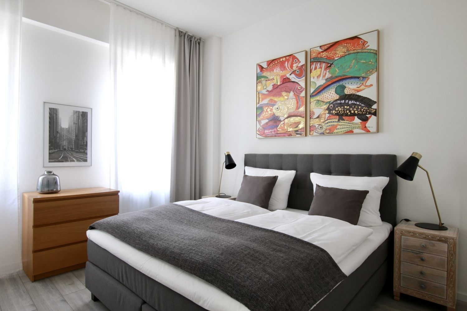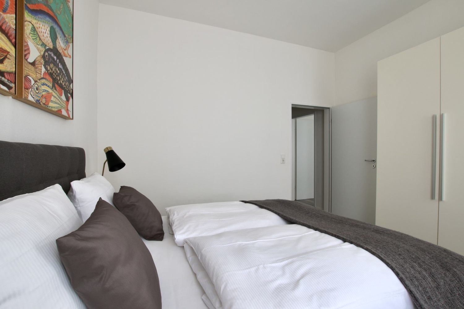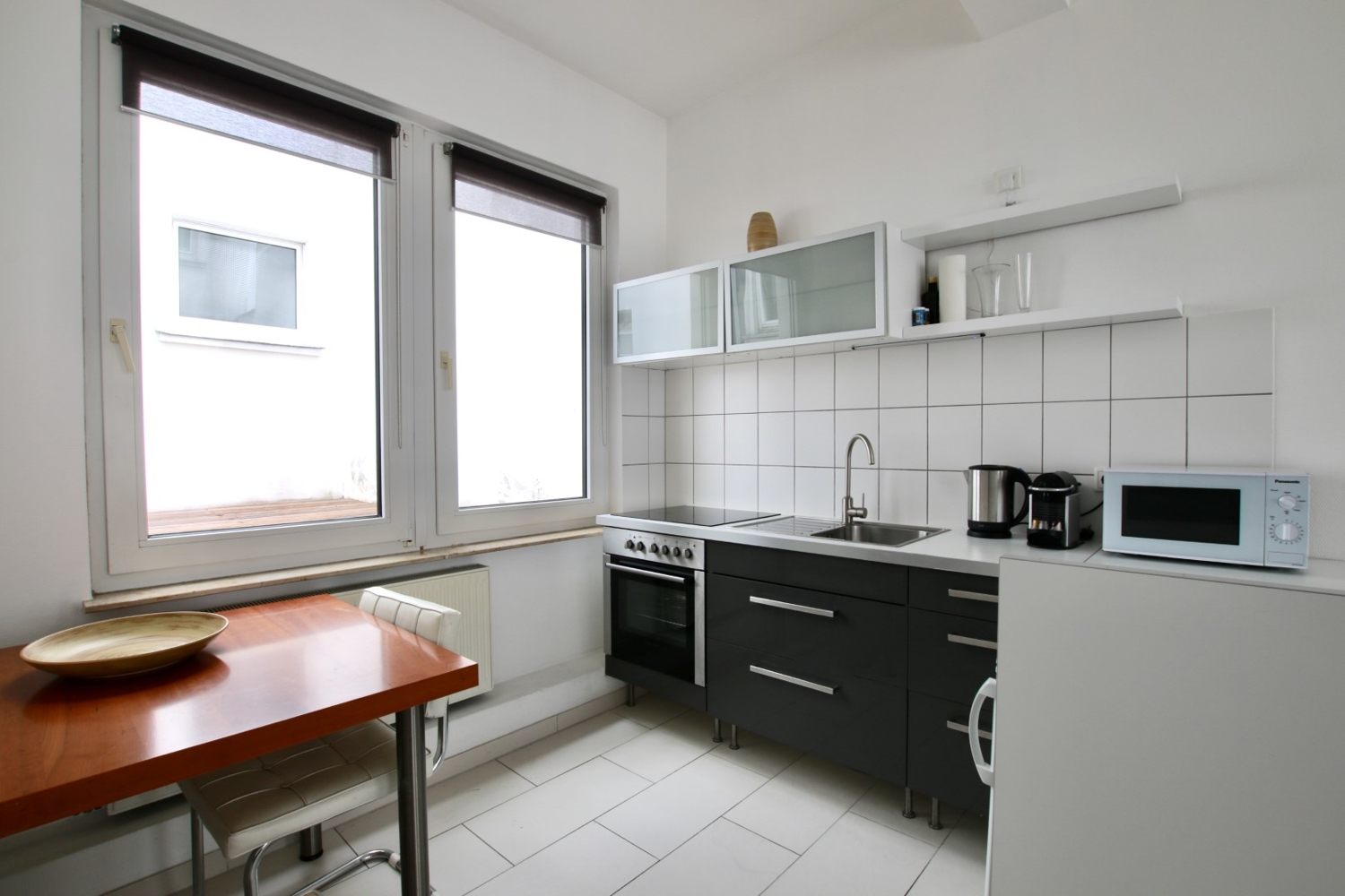 Quiet apartment, living room, bedroom with queen-size bed 1.40 m, WiFi internet connection incl., change of bed linen and cleaning service on request at an extra charge, minimum term of lease 2 months, shorter rental period on request, plus final cleaning 220,00 €