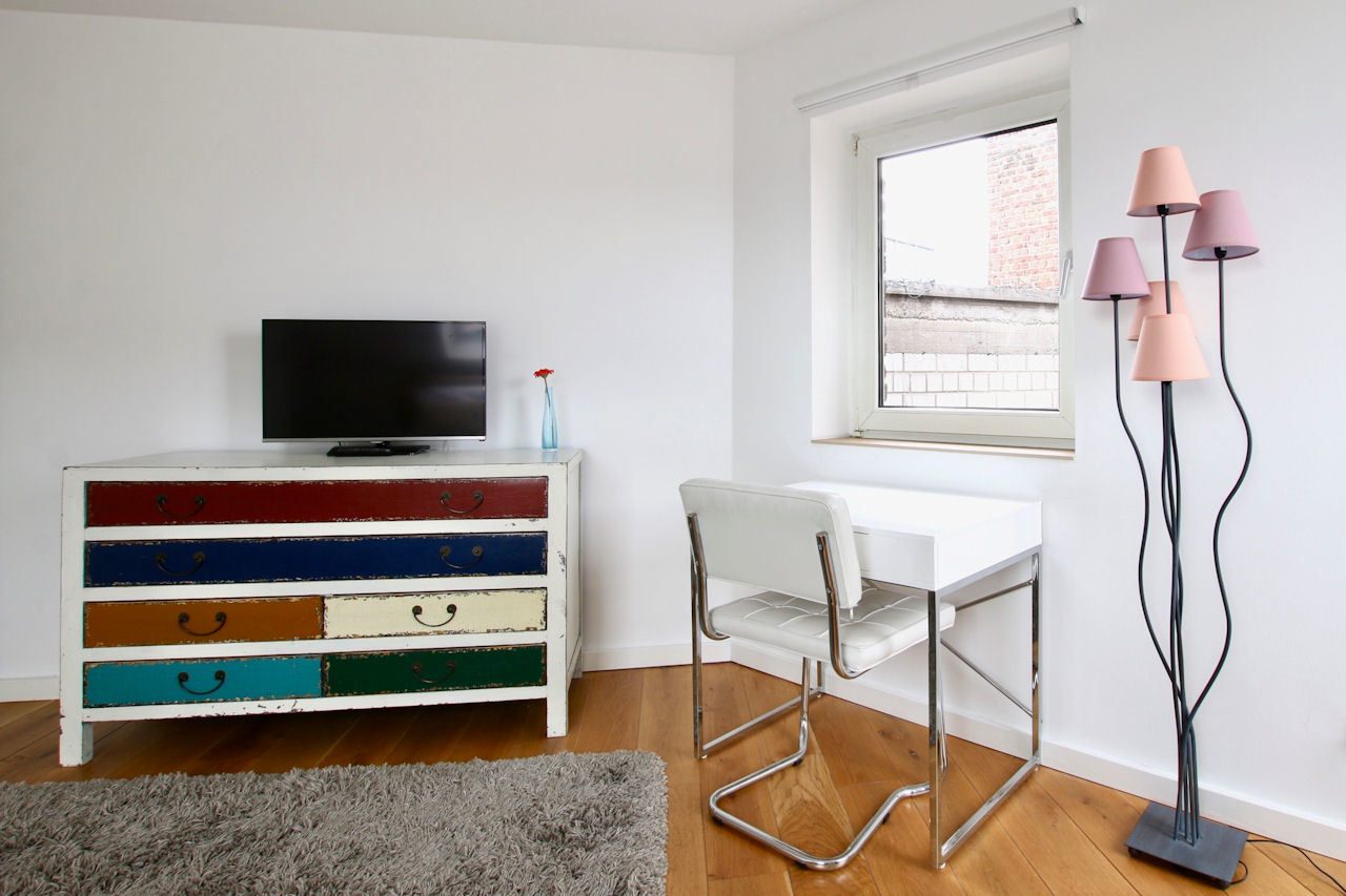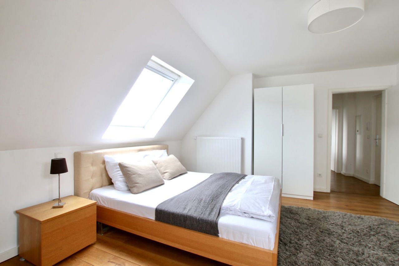 Bedroom with a double bed 1.60m, bed linen and towels included, cleaning service possible at an extra charge, WiFi internet connection incl., minimum term of lease 2 months, plus final cleaning 220,00 €