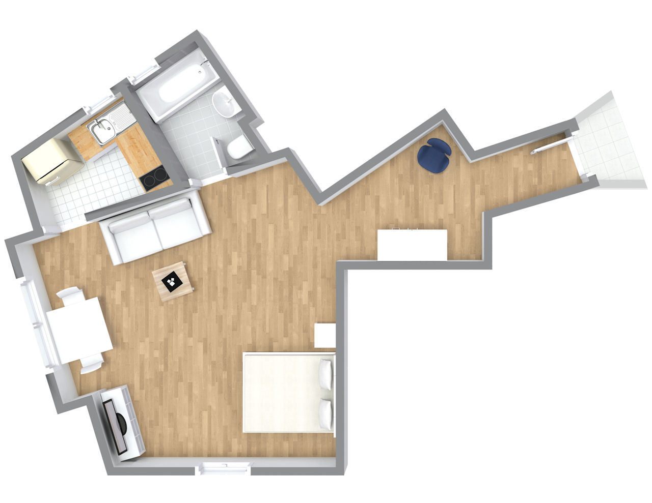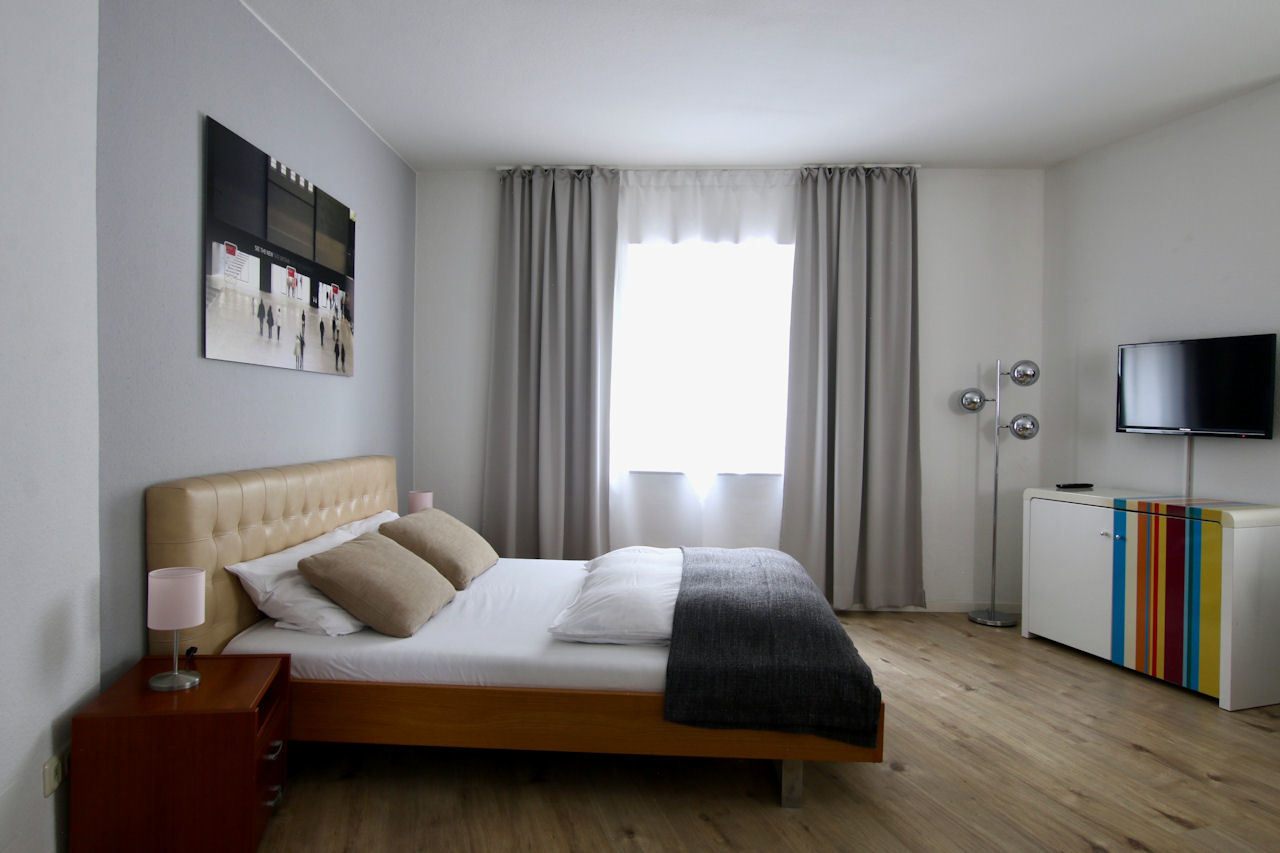 Living/bedroom with queen-size bed, change of bed linen and cleaning service on request at an extra charge, WiFi internet connection incl., minimum term of lease 2 months, shorter rental period on request, plus final cleaning 180,00 €