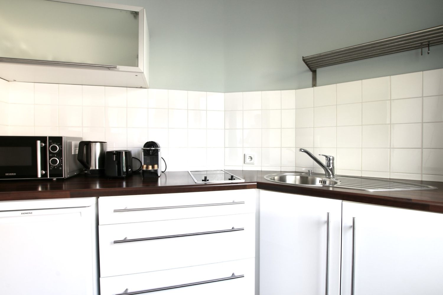 Living room / bedroom with double bed 1.60 m, bed linen and cleaning service optionally, laundry room in the basement, incl. DSL WiFi internet connection, minimum term of lease 2 months, plus final cleaning 180,00 €