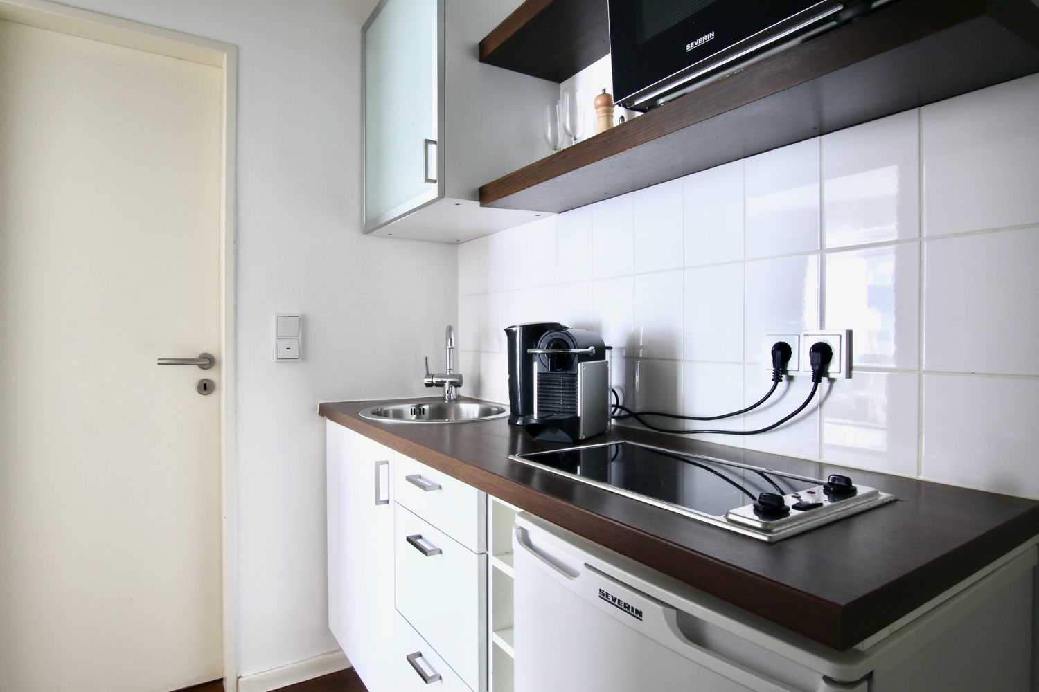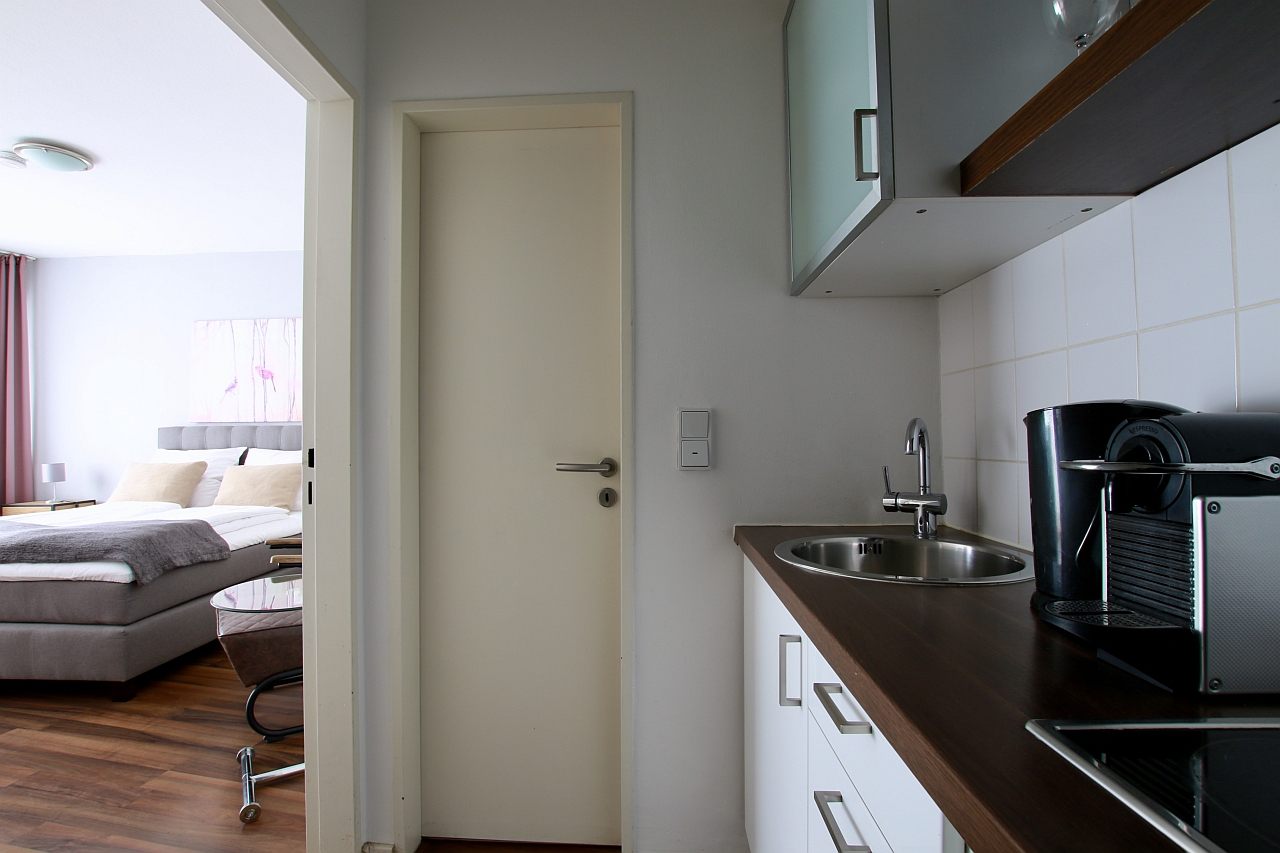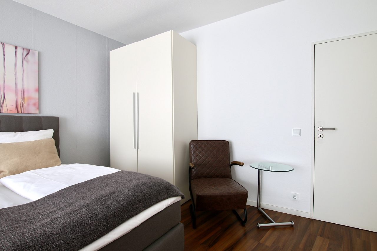 Modern furniture, laminate floor, integrated kitchenette with microwave, bathroom with tub, cable TV, DSL WiFi internet connection optionally, washing machine in the basement
