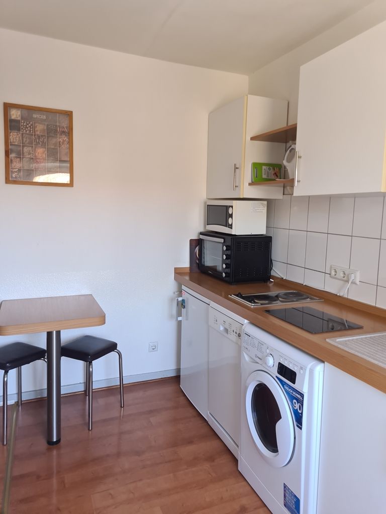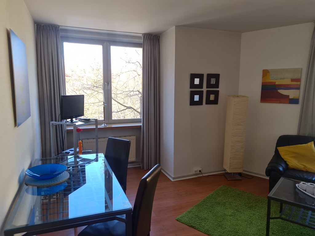 Living room, bedroom with queen-sized bed 1.40 m, bed linen and towels available, incl. internet, pets not allowed, non-smoking, max. 1 person, minimum term of lease 7 months