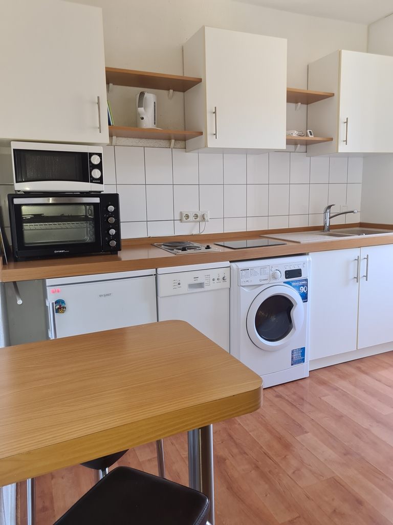 Tasteful furniture, laminate floor, separated fitted kitchen with dishwasher and microwave, bathroom with shower, cable TV, internet, washing machine and dryer