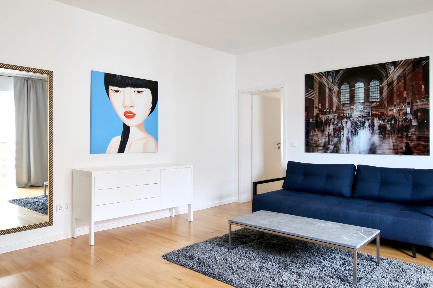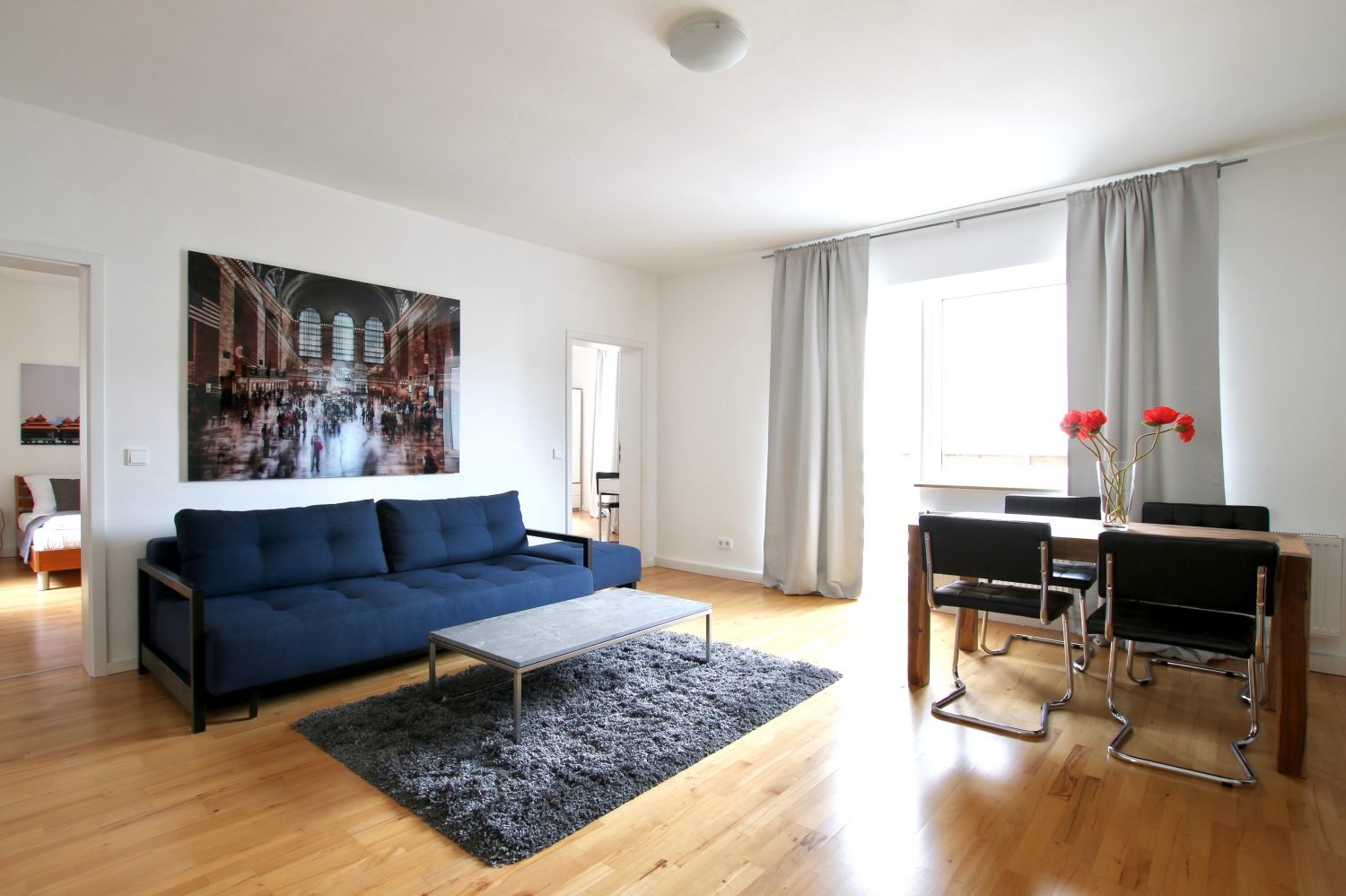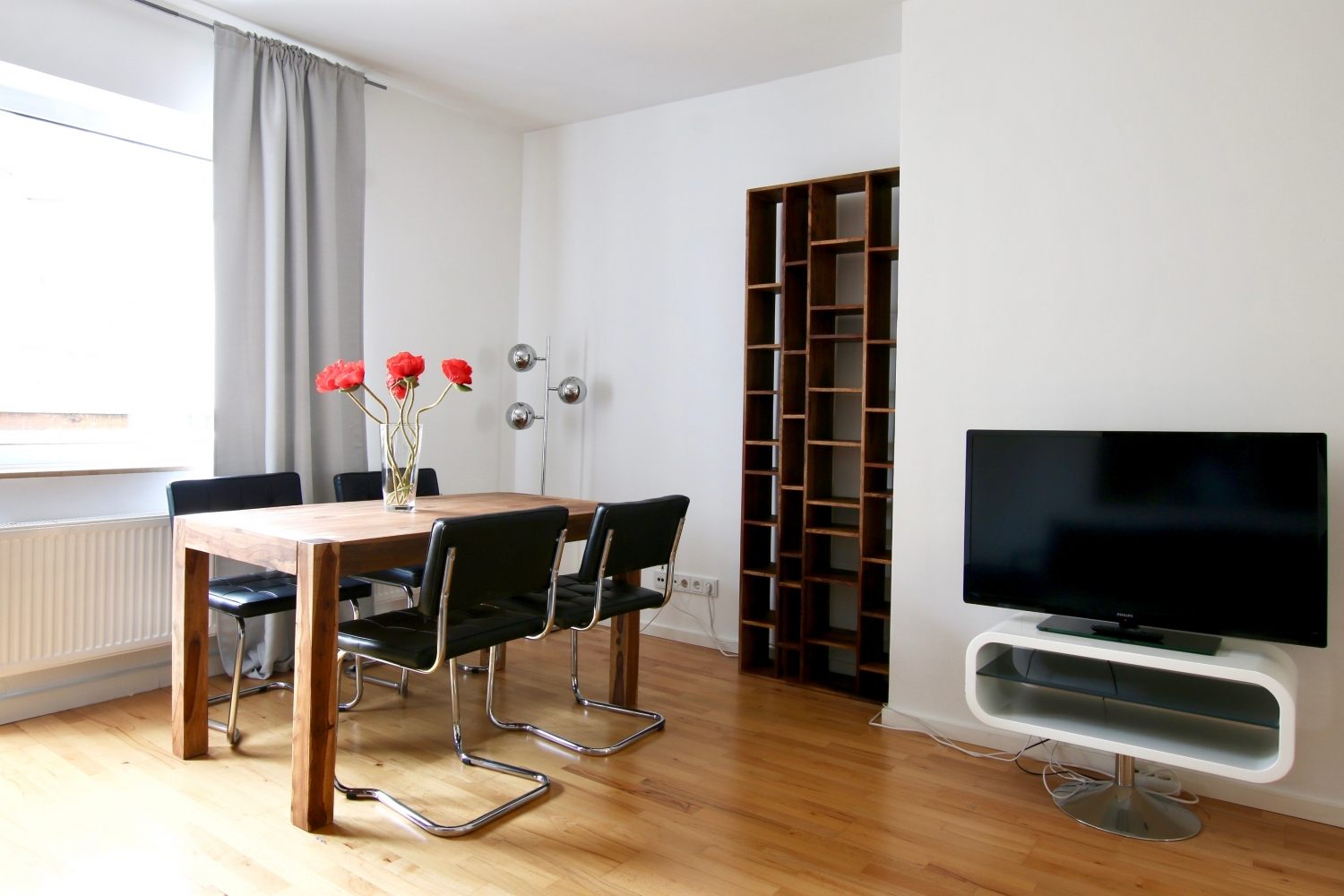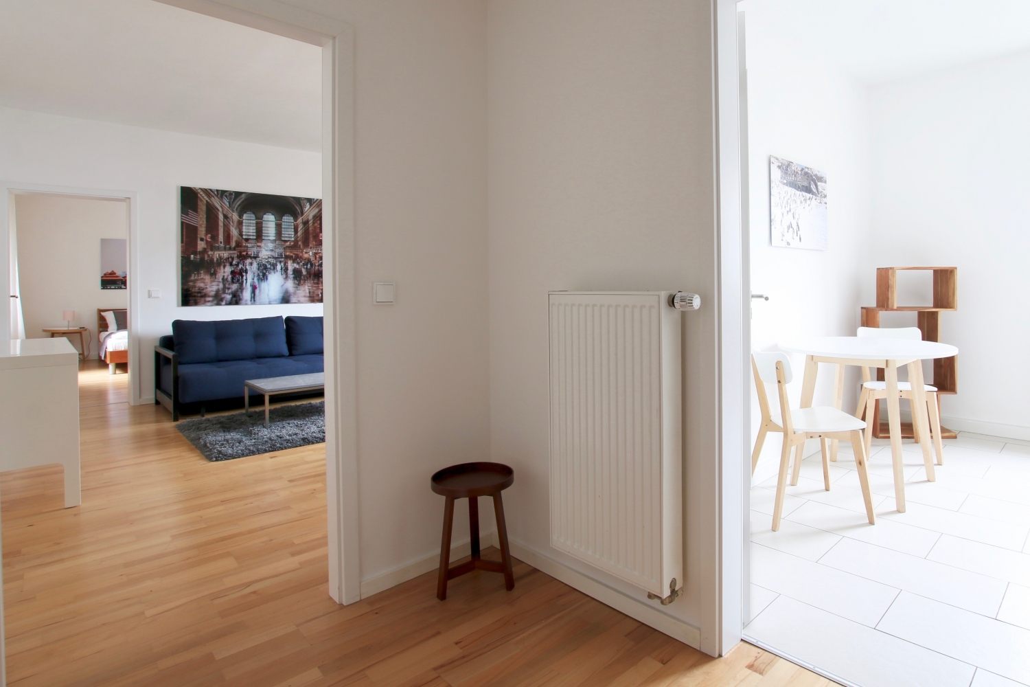 Modern furniture, wooden floor, separated eat-in kitchen, bathroom with shower, flatscreen cable TV, WiFi internet connection
