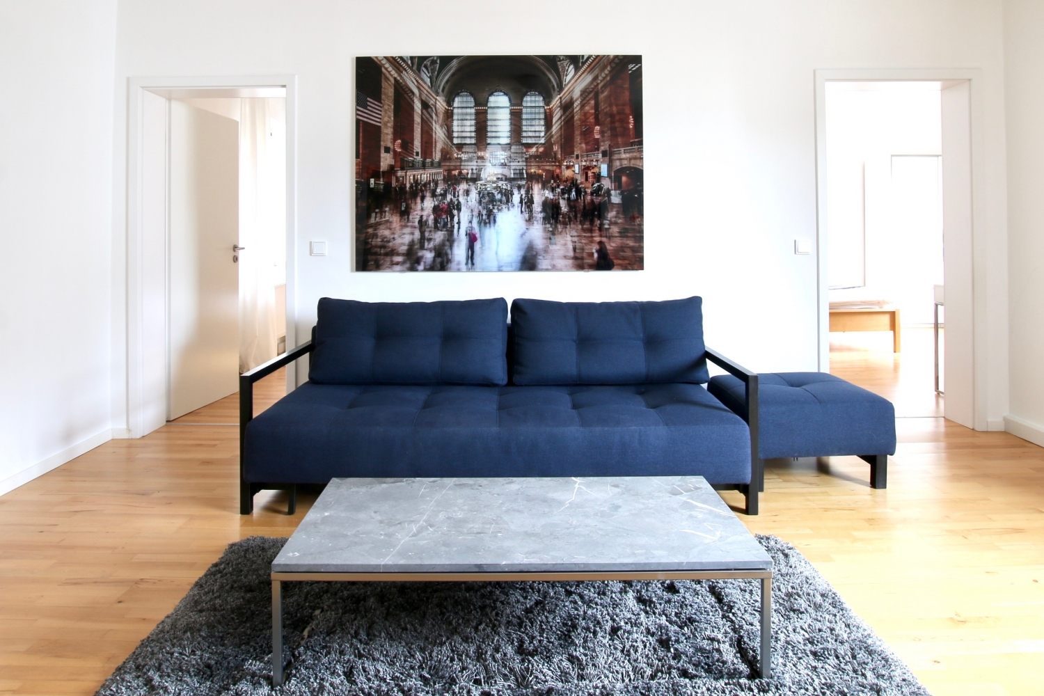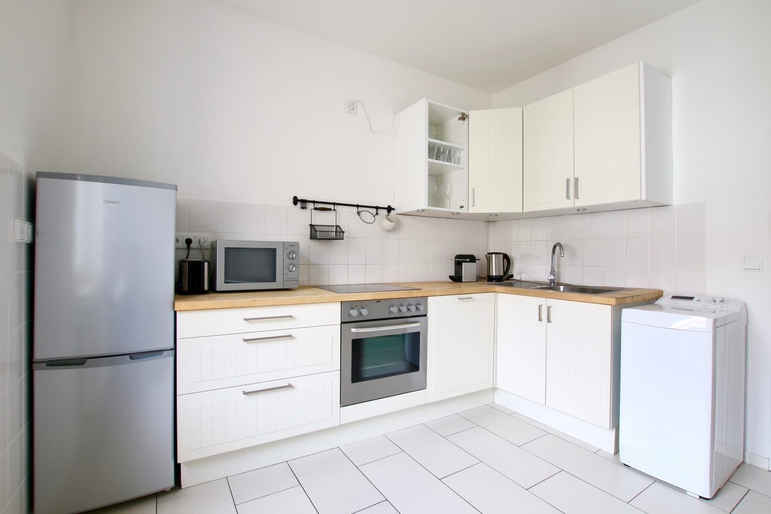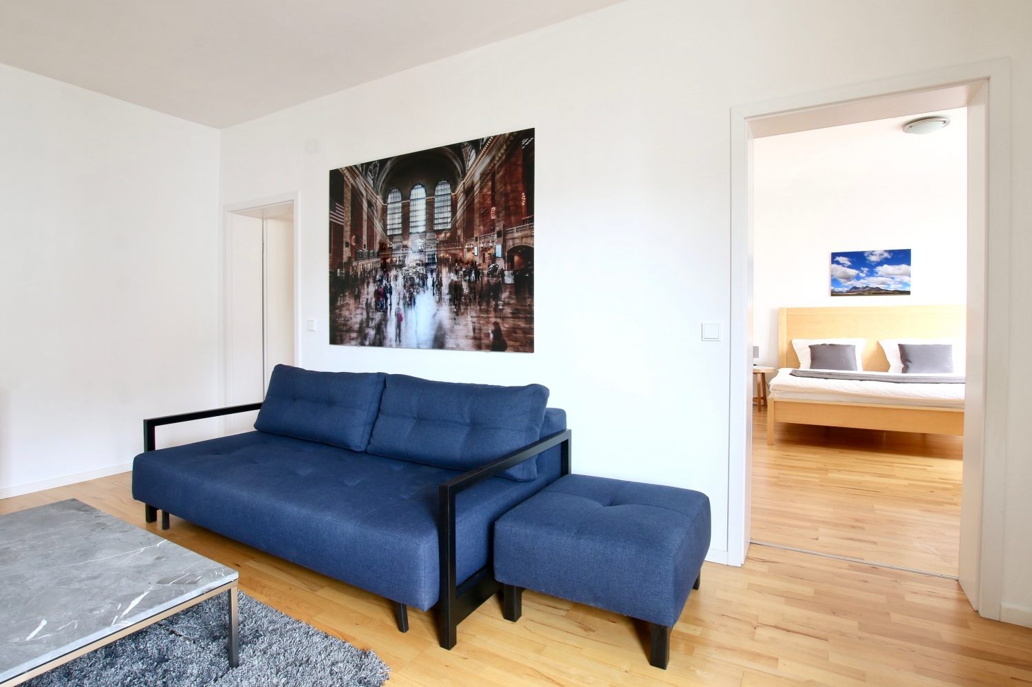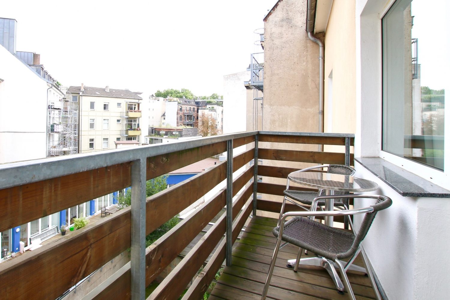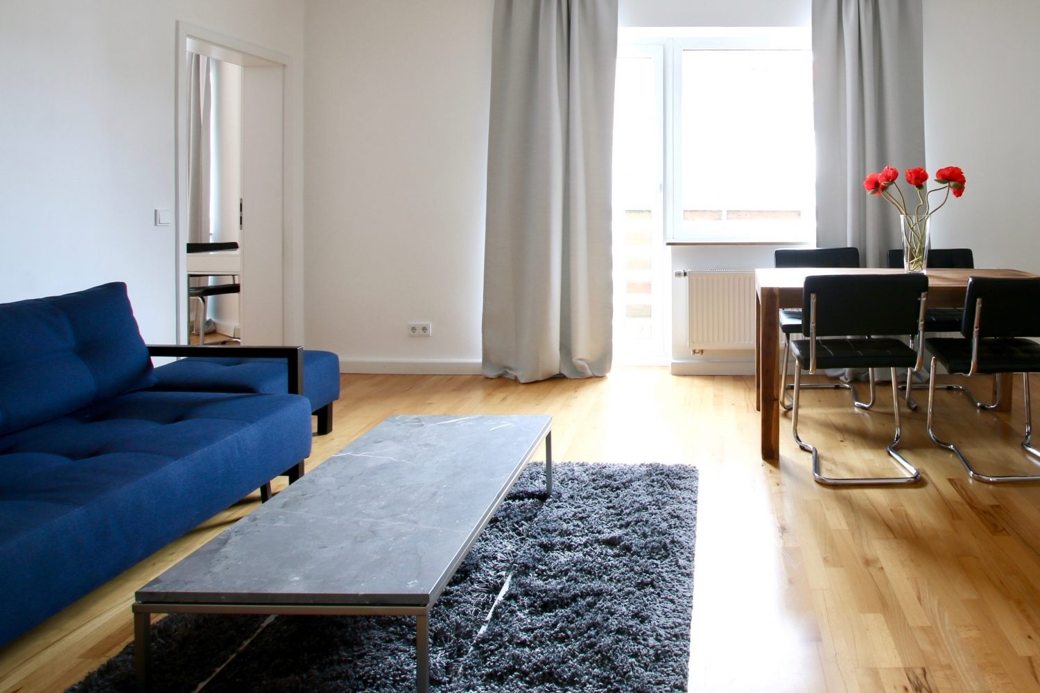 Balcony, living room, 1st bedroom with double bed 1.60 m, 2nd bedroom with queen-sized bed 1.40 m, bed linen and towels available, pets not allowed, smoking only on the balcony, WiFi optionally for 8.00 EUR/week, cleaning and laundry service optionally for a surcharge, minimum term of lease 6 months, plus final cleaning 320,00 €