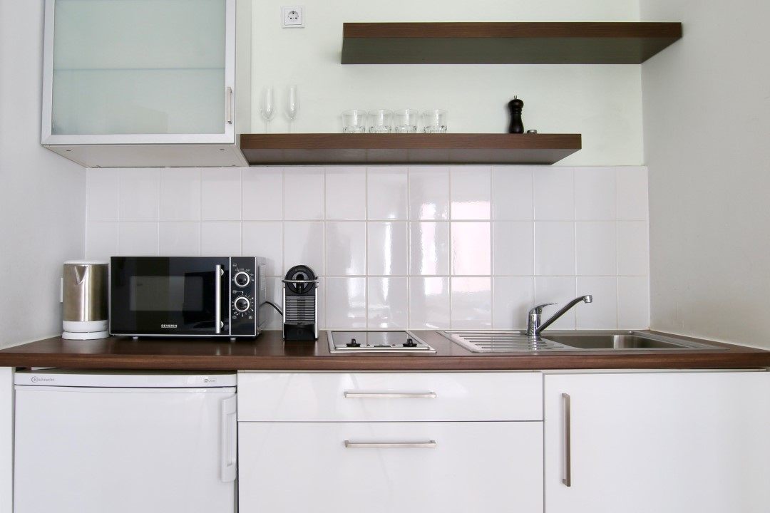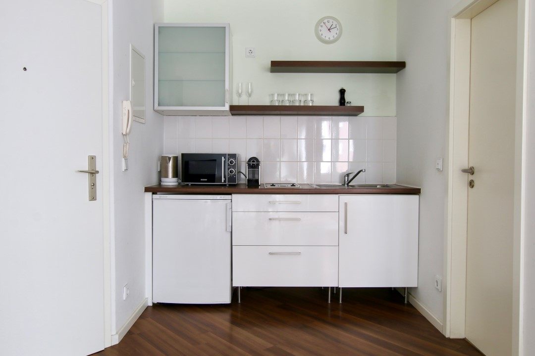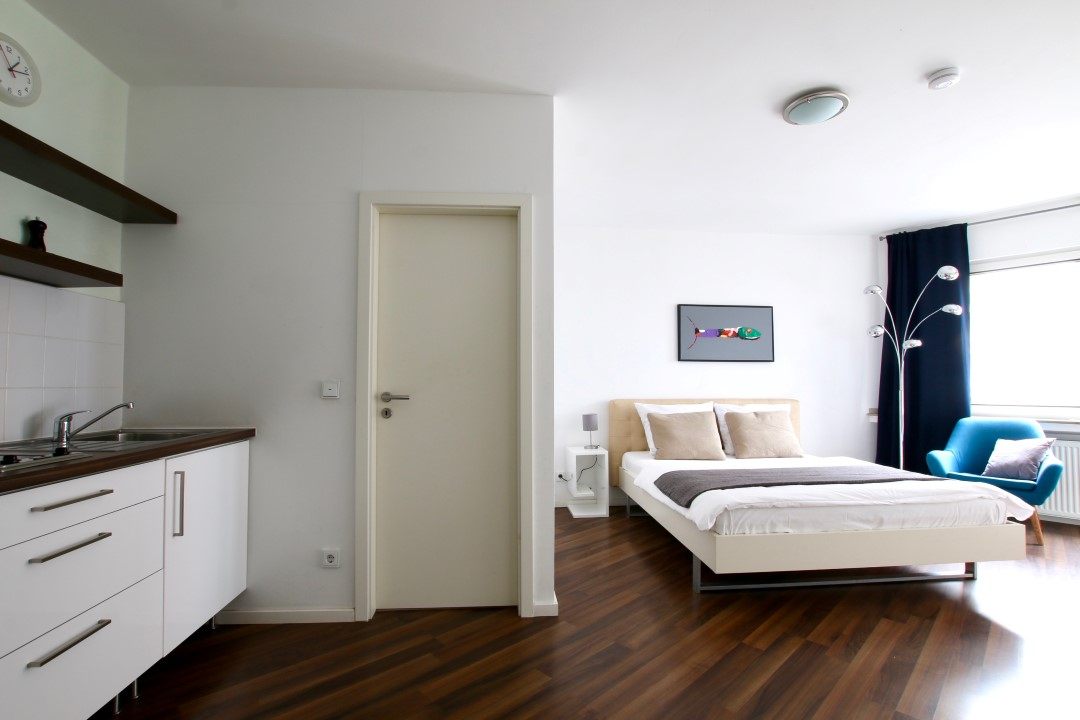 Living room / bedroom with double bed 1.40 m, bed linen and cleaning service optional, washing room in the basement, DSL WiFi internet connection optionally for € 8/week, minimum term of lease 2 months, plus final cleaning 180,00 €