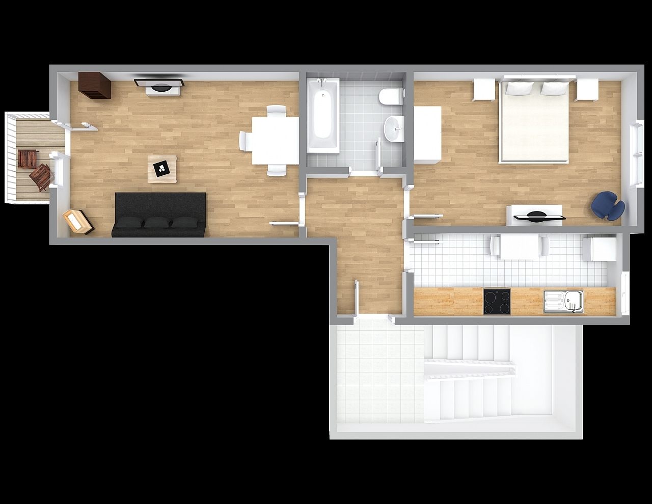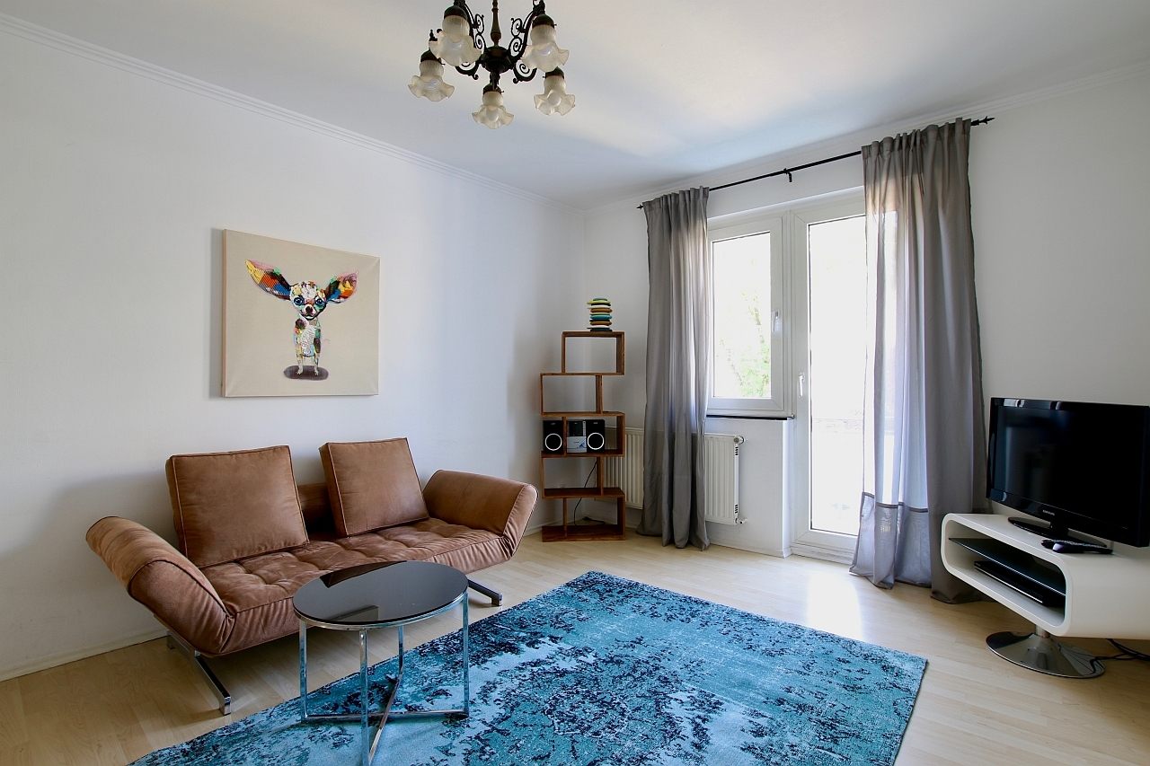 Balcony, living room with daybed 0.90 m, bedroom with double bed 1.60 m, bed linen and cleaning-service on request, non-smoking, minimum term of lease 6 months, plus final cleaning 220,00 €