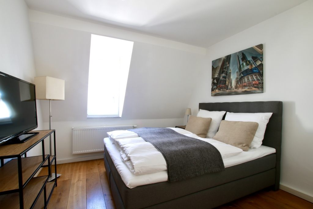 Living room / bedroom with queen-sized bed 1.40 m, non-smoking, weekly cleaning and linen service optionally against surchrage, max. 2 people, minimum term of lease 2 months, plzus final cleaning 140,00 €