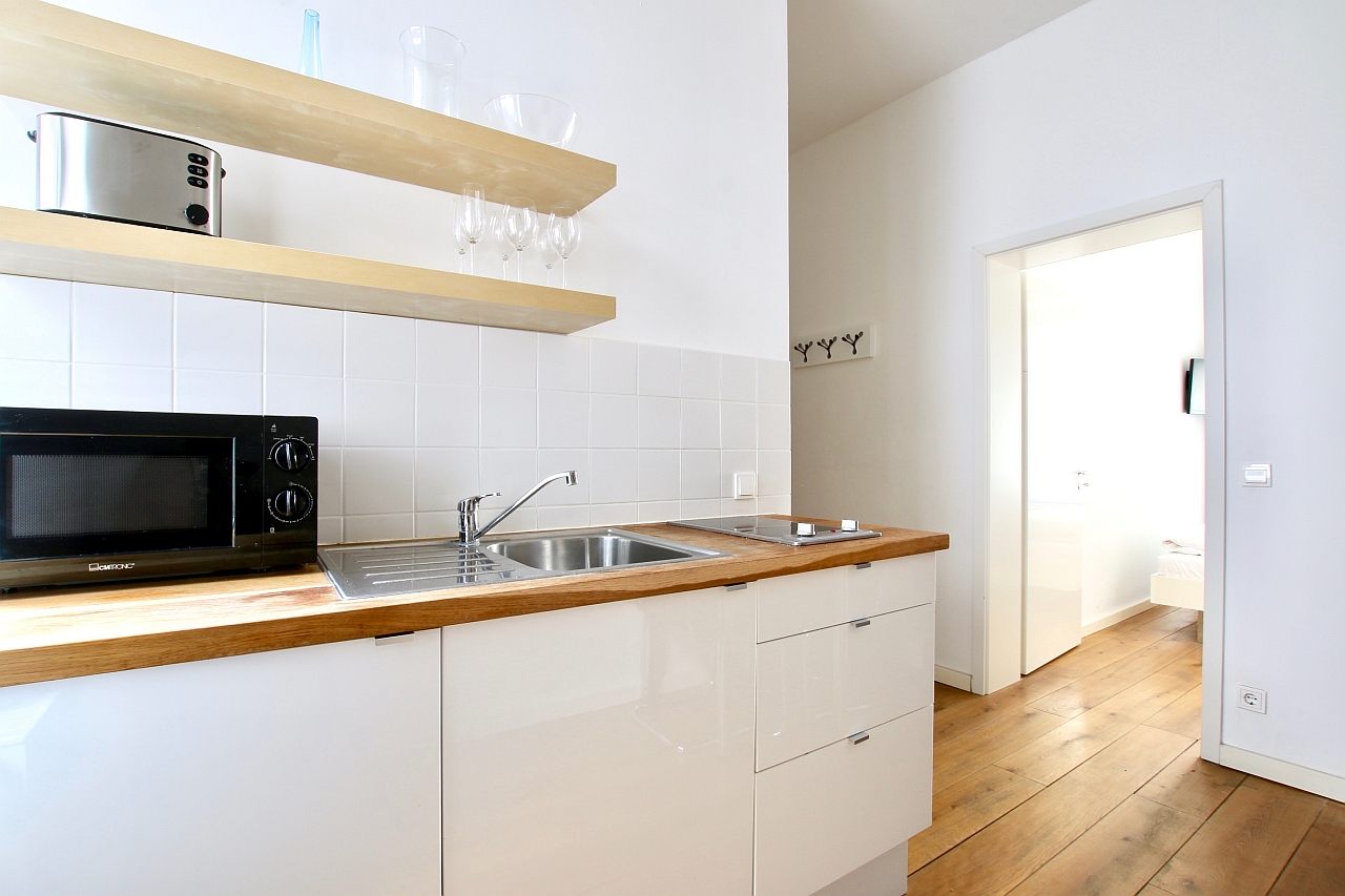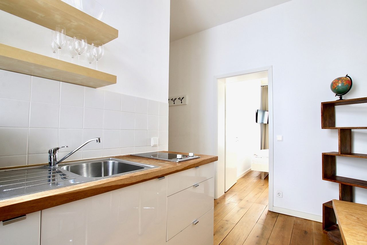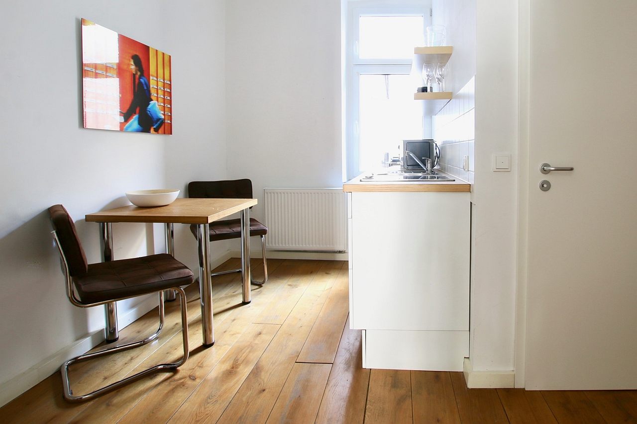 Modern furniture, parquet floor, kitchenette with stove, bathroom with shower, cable TV, flatscreen, WiFi internet connection optional