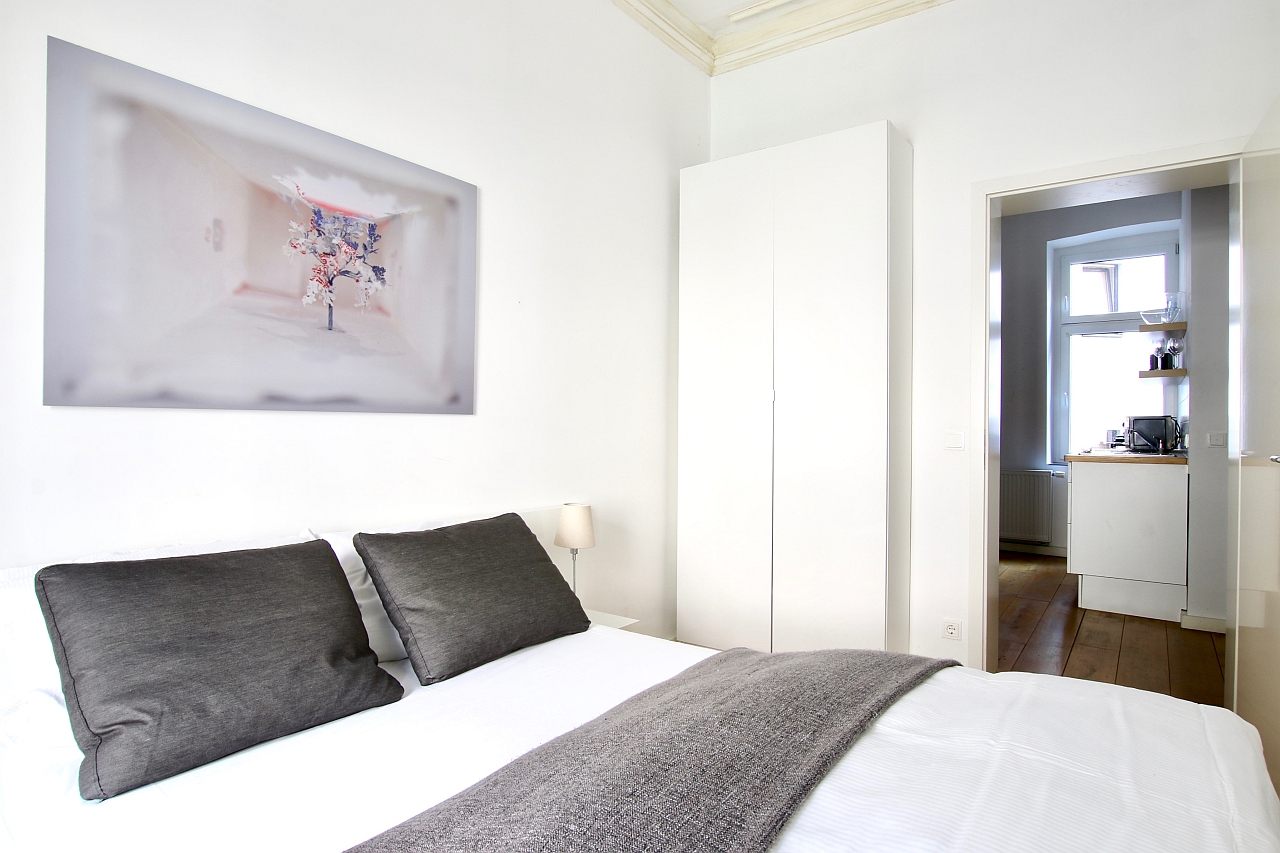 Living room / bedroom with queen-sized bed 1.40 m, non-smoking, weekly cleaning and linen service optionally against a surchrage, max. 2 people, minimum term of lease 2 months, plus final cleaning 140,00 €