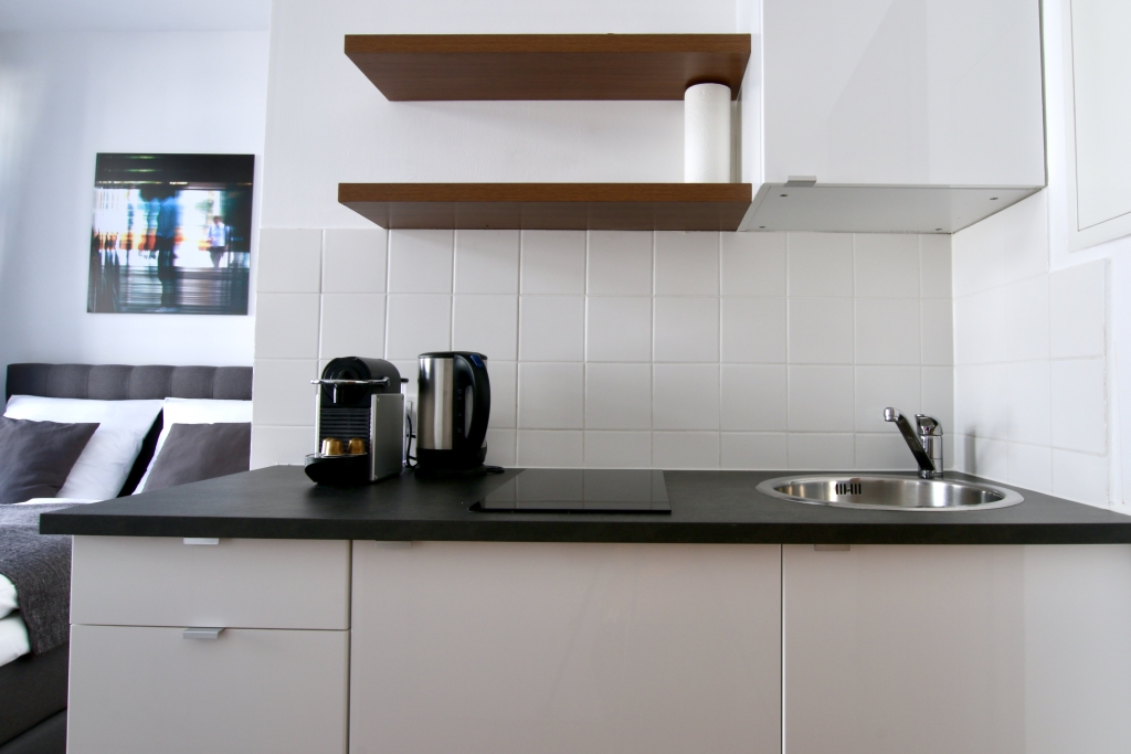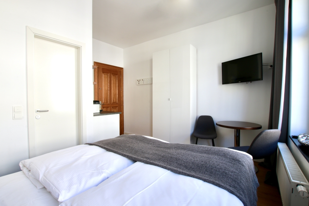 Living/bedroom with queen-size bed 1.40 m, non-smoking, weekly cleaning and linen service optionally against a surchrage, max. 2 people, minimum term of lease 2 months, plus final cleaning 140,00 €