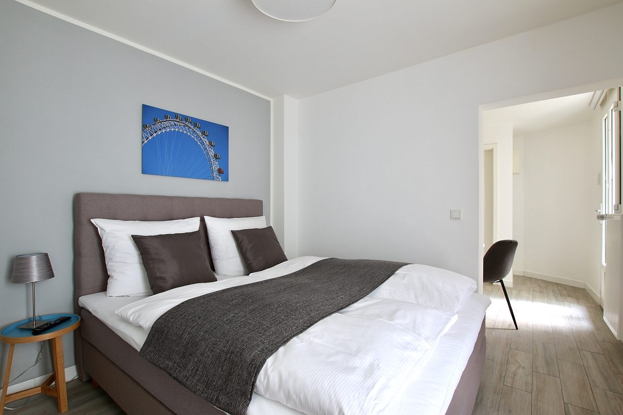 Terrace, living/bedroom with queen-size bed 1.40 m, bed linen and towels available, weekly cleaning service optionally, non-smoking, pets not allowed, max. 2 people, minimum term of lease 2 months, shorter rental period on request, plus final cleaning 140,00 €