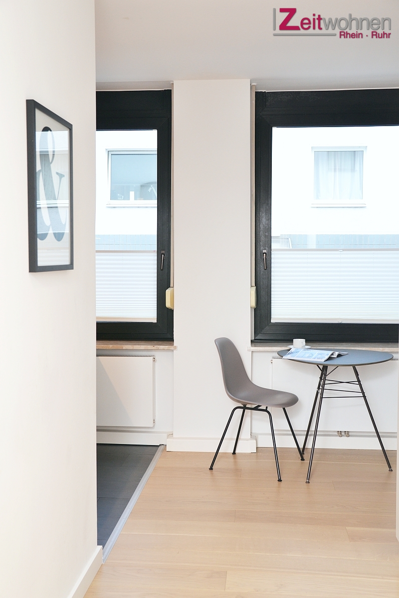 modern furniture, parquet floor, integrated Bulthaup kitchenette with microwave and coffeemaker, daylight bathroom with shower, cable-tv, Wifi internet access, high-quality sound system, safe, basement storage unit for sole use of the tenant, coin-operated washing machine and dryer in the basement