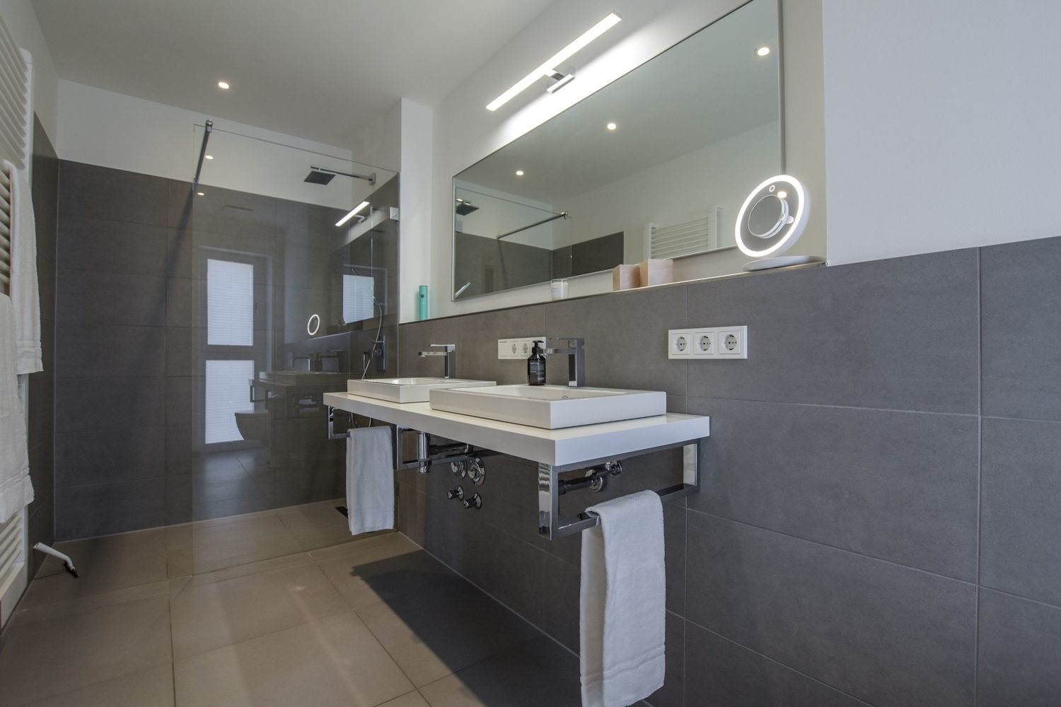 Modern and high-quality furniture, parquet floor, underfloor heating, fully equipped integrated kitchen with dish washer and coffee maker, bathroom en suite with tub, second bathroom with shower, cable TV, flat screen, wireless Internet access, storage with washing machine,dryer and freezer