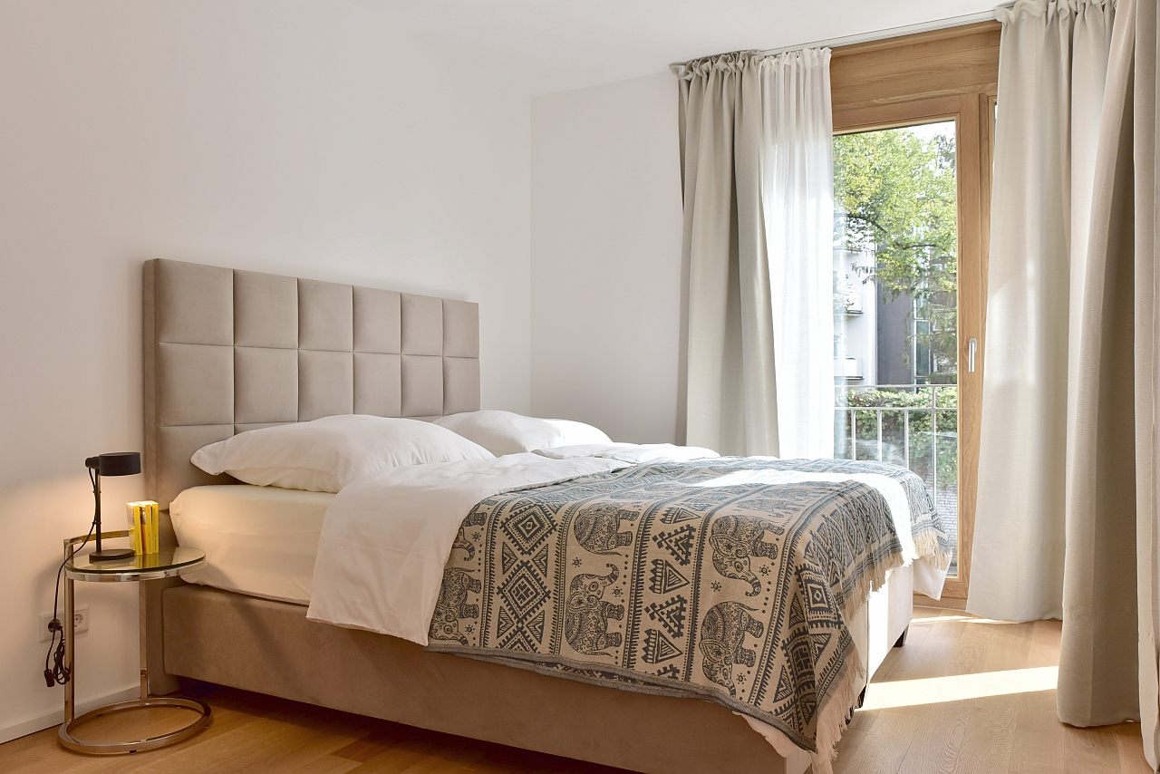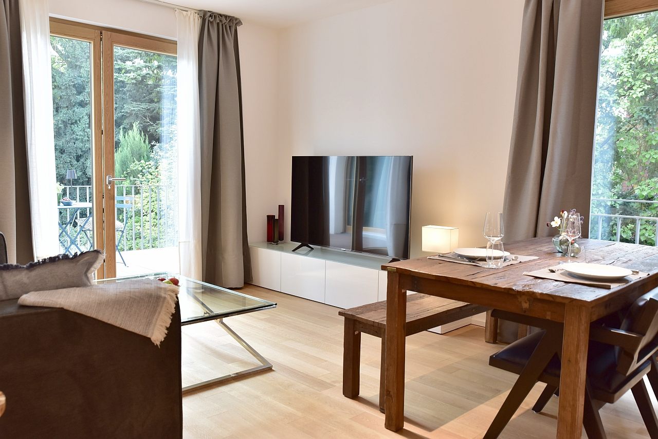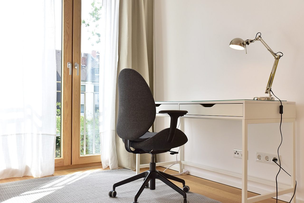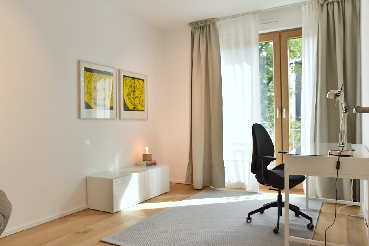 Terrace, living room, study, bedroom with double bed 1,80m, bed linen and towels available. Bed 1.80m, bed linen and towels available, incl. WIFI internet access, pets not allowed, parking space for an extra charge, charging station for an extra charge, non-smoking, max. 2 persons, minimum rental period 6 months