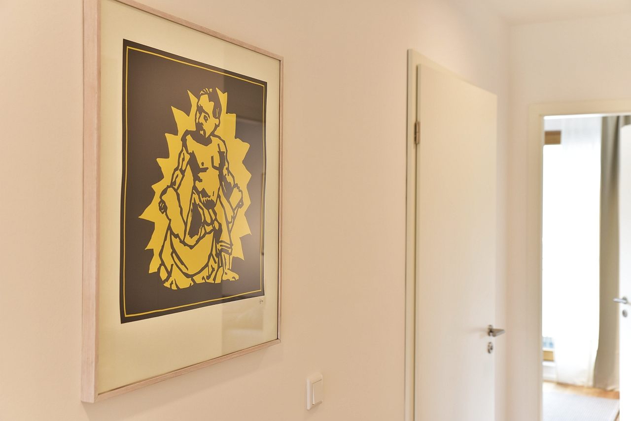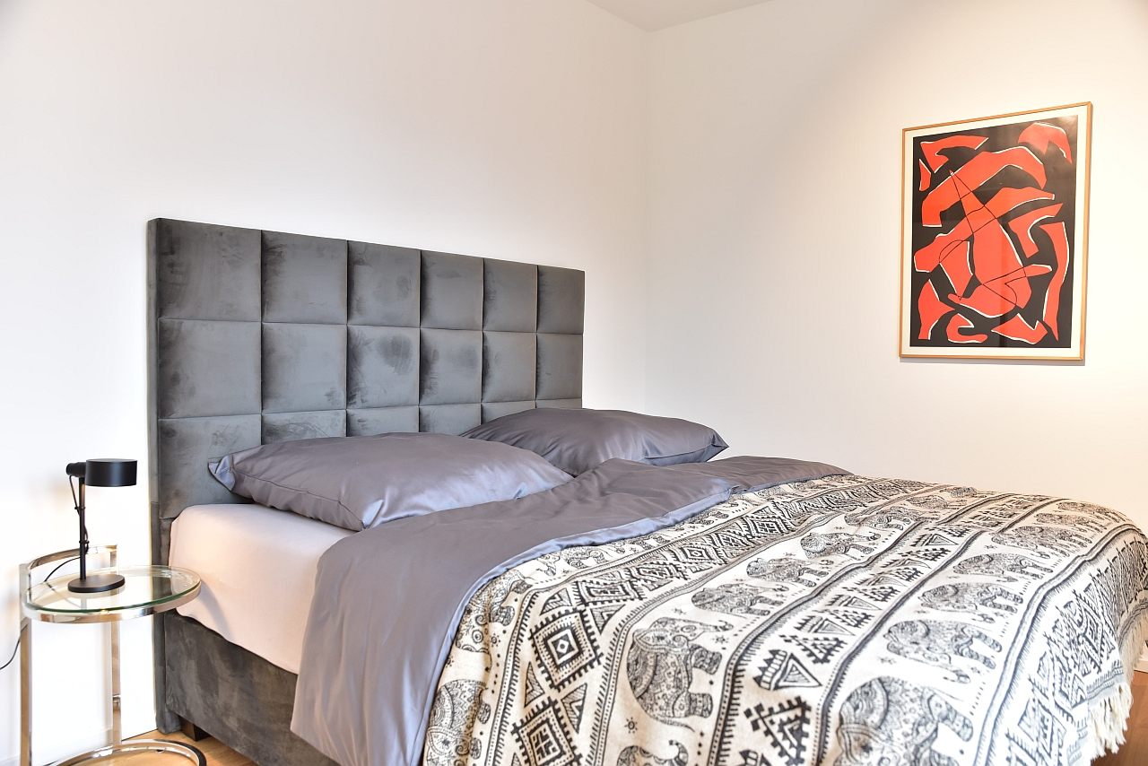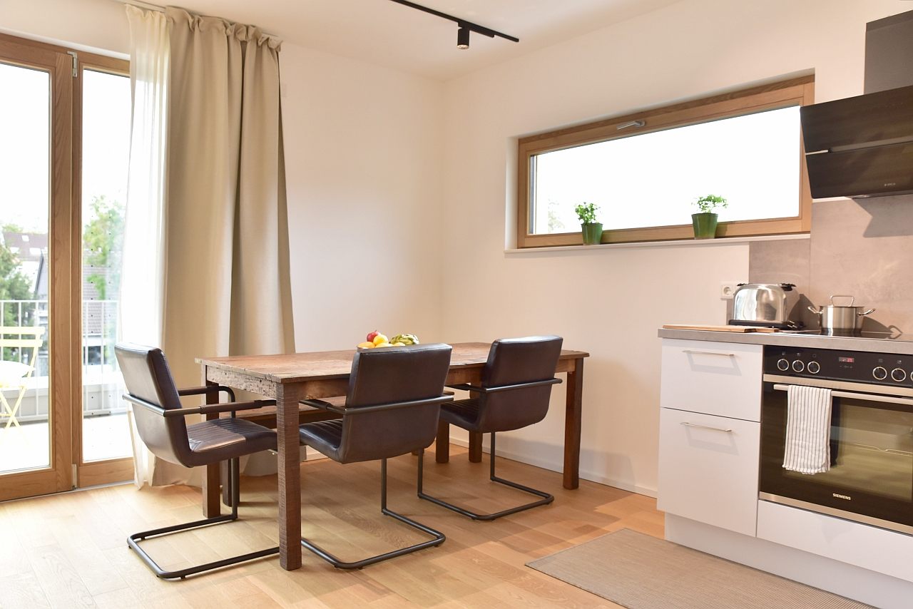 Terrace, living room, study, bedroom with double bed 1,80m, bed linen and towels available. Bed 1.80m, bed linen and towels available, incl. WIFI internet access, pets not allowed, parking space for an extra charge, charging station for an extra charge, non-smoking, max. 2 persons, minimum rental period 6 months