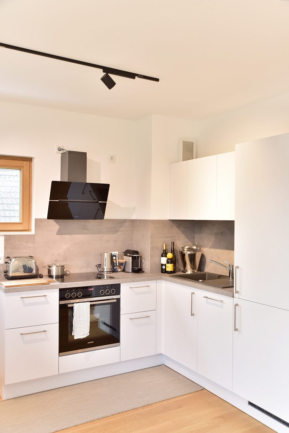 Modern furnishings, real wood floorboards, integrated fitted kitchen with dishwasher, oven and microwave, daylight shower room, Smart TV, WIFI internet access, washing machine for sole use in private cellar compartment