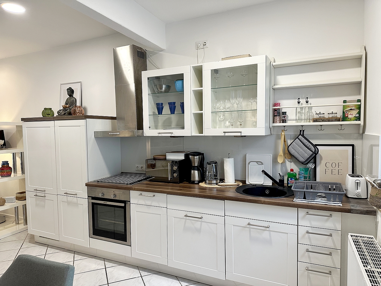 • Modern furnishings, tiled floor, fully equipped separate fitted kitchen with dishwasher, stove, oven, coffee machine and microwave, bathtub, smart TV, WiFi internet access with 100 Mbits, washer-dryer in the basement for sole use
