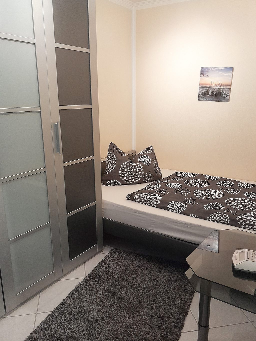 Balcony, living room, dining area with table. Bedroom with 1.40 m double bed, bed linen and towels provided, including parking space, max. 1 person. Minimum rental period 6 months.