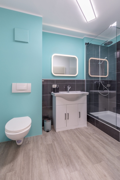 Living room with sofa bed for 1 person, bedroom with double bed 1.60 × 2.00 m. Hobby room with a desk. Bed linen and towels provided, internet included, pets allowed by arrangement, non-smoking. Rental price is for 3 persons, max. 3 persons occupancy, minimum rental period 6 months. Rent includes electricity, heating. Final cleaning by arrangement.