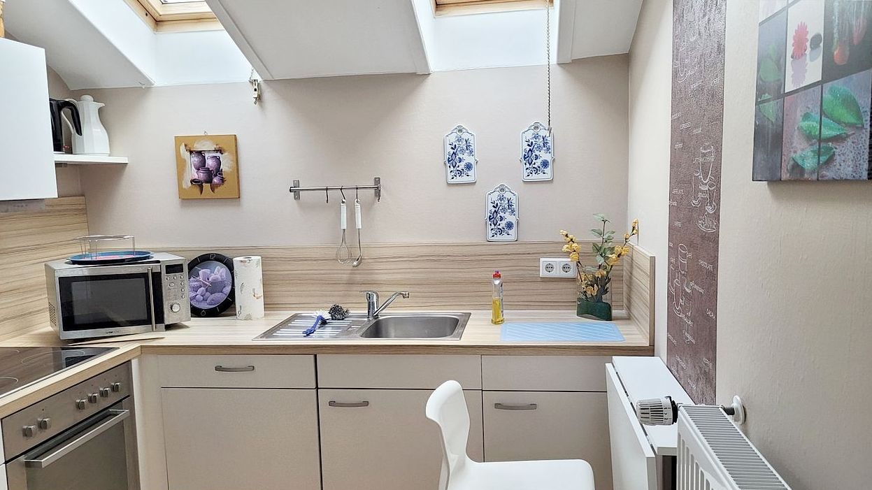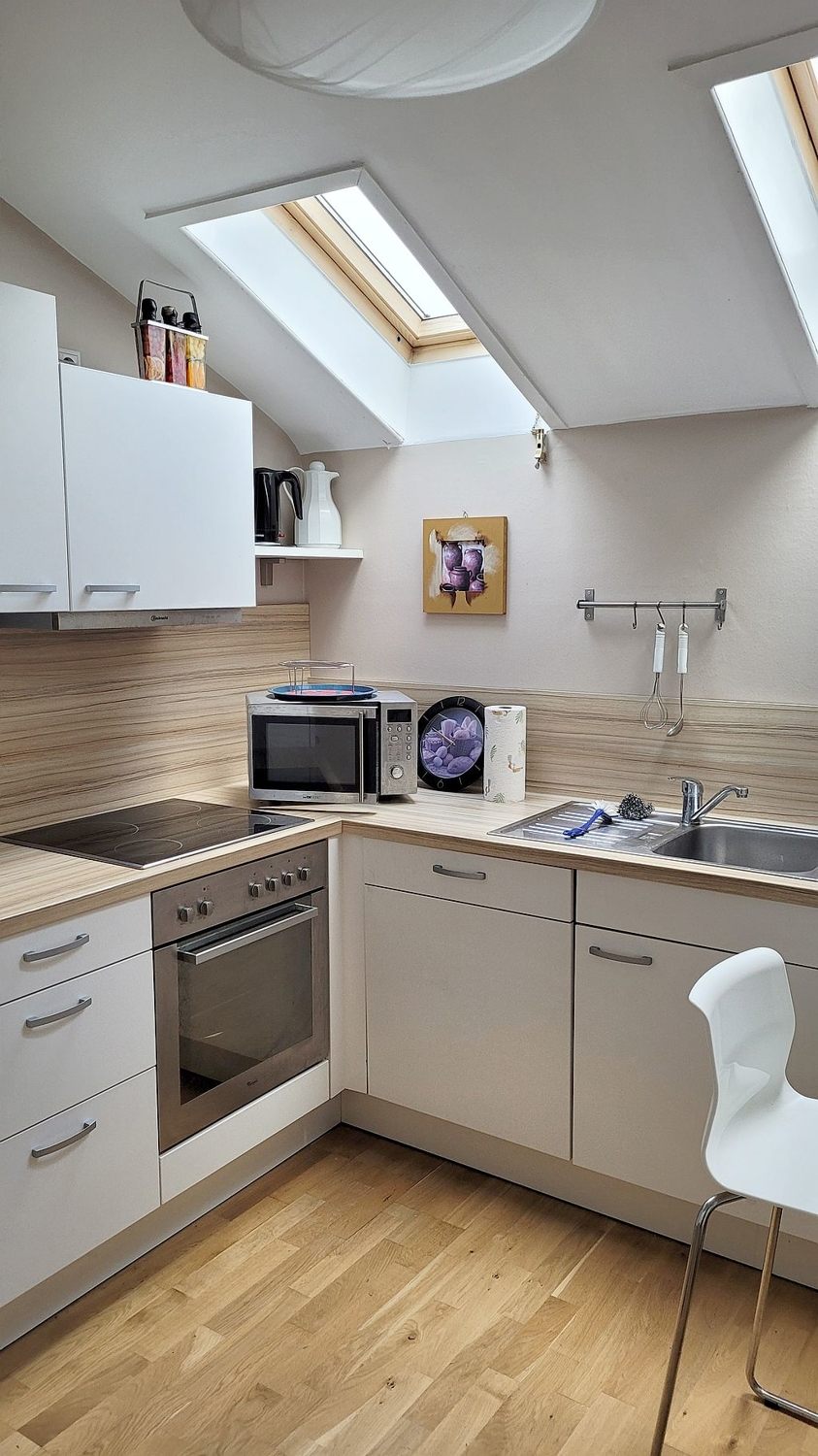 moderne Möblierung, Parkett und Teppichboden, separate Einbauküche mit Spülmaschine und Mikrowelle, Tageslicht Wannenbad, Sat-TV, Internet W-Lan, Waschmaschine und Trockner im Keller