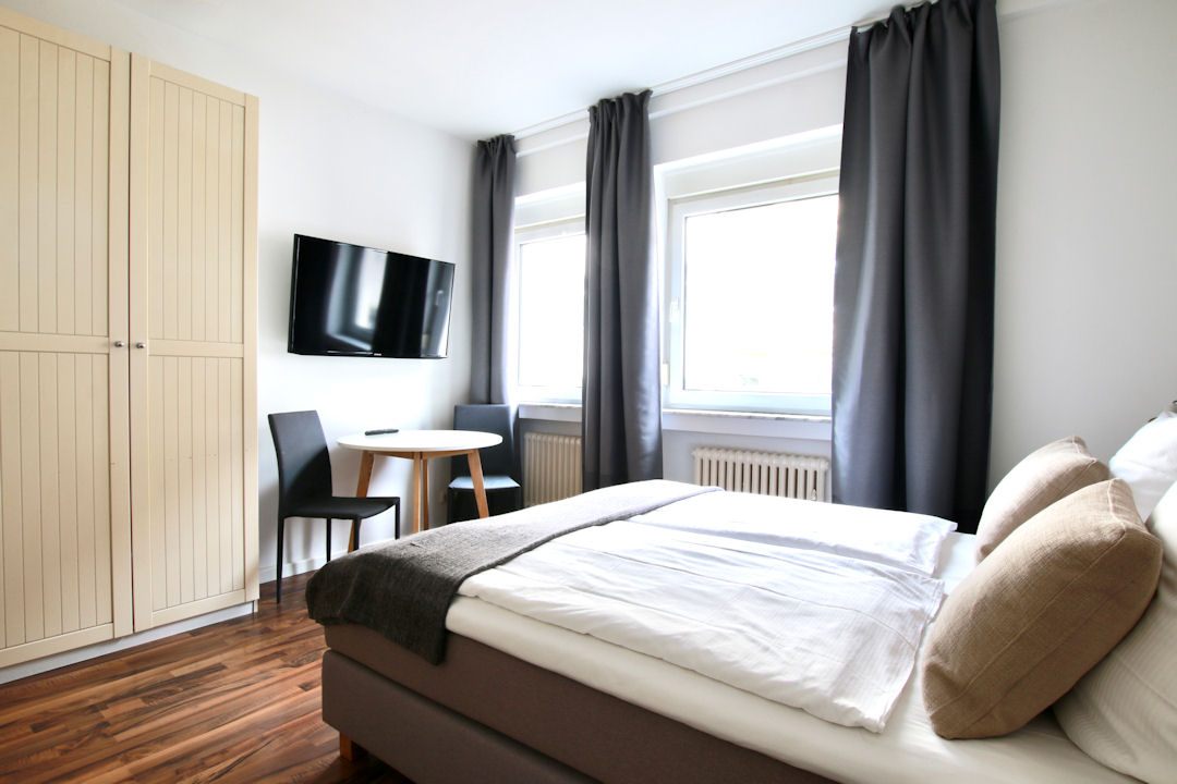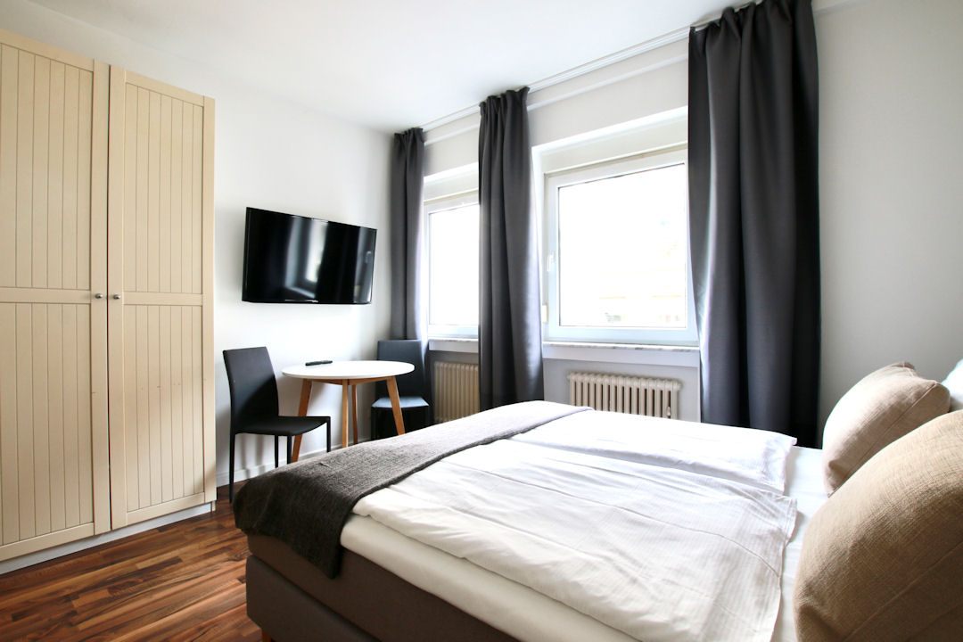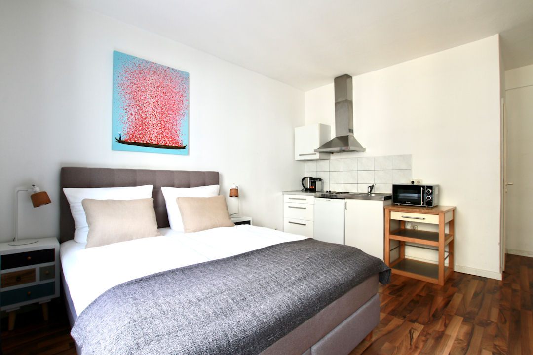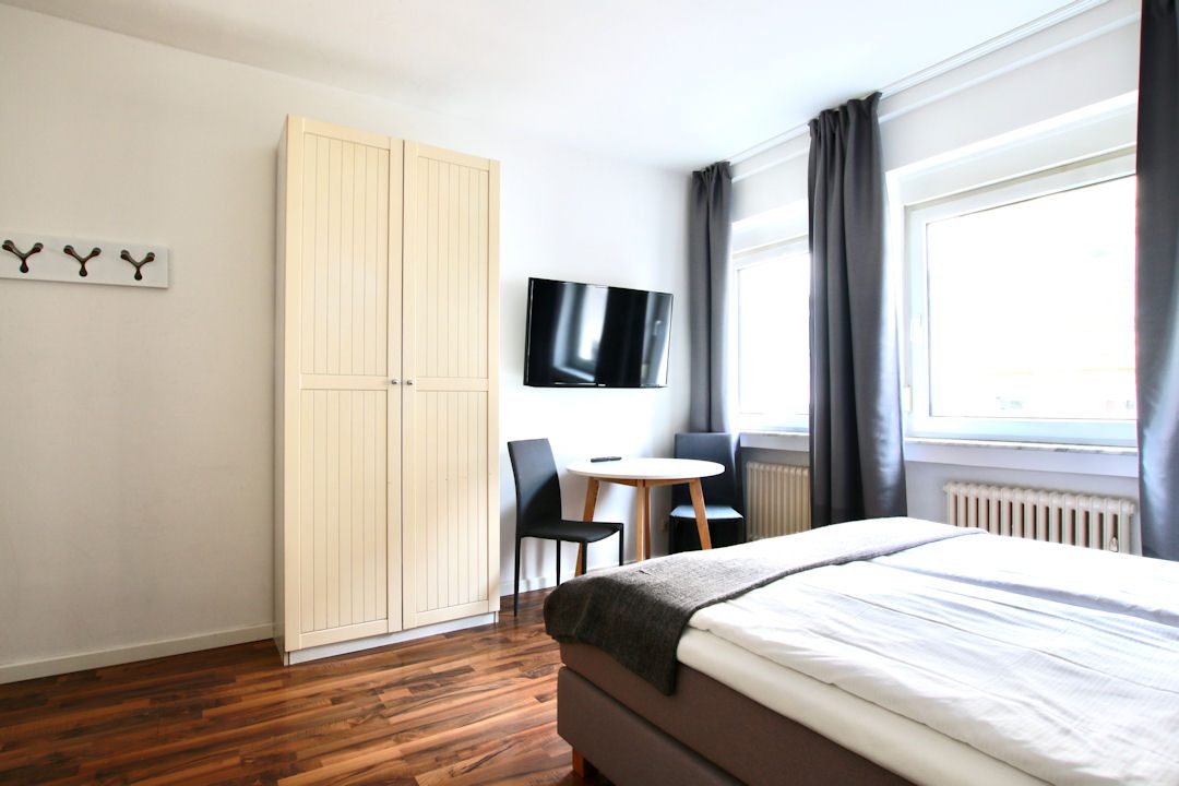 Wohn-/ Schlafzimmer mit französischem Bett 1,40 m, Bettwäsche und Handtücher vorhanden, inkl. wöchentlichem Wäschewechsel, inkl. WLAN-Internetanschluss, PKW-Stellplatz auf Wunsch gegen Aufpreis, Mindestmietdauer 3 Monate,