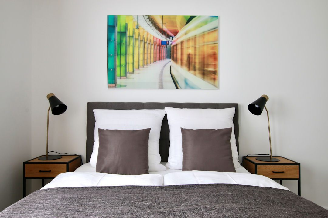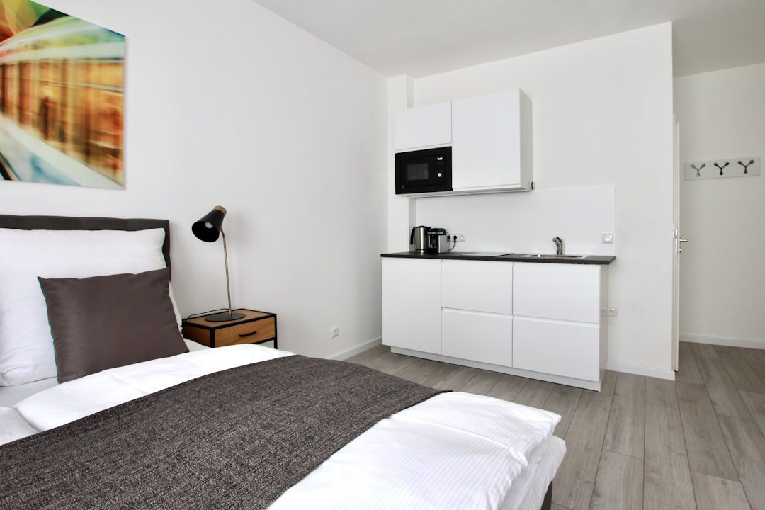 Wohn-/ Schlafzimmer mit französischem Bett 1,40 m, Bettwäsche und Handtücher vorhanden, Nichtraucher, inkl. WLAN-Internetanschluss, Reinigungs- und Wäscheservice auf Wunsch gegen Aufpreis, Mindestmietdauer 3 Monate