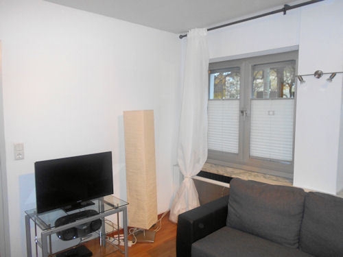 Wohnzimmer mit Schlafsofa, Schlafzimmer mit franz. Bett 1,40 m, Bettwäsche und Handtücher vorhanden, inkl. WLAN-Internetanschluss, Tierhaltung nicht gestattet, Nichtraucher, kindgerecht, max. 2 Personen, Mindestmietdauer 7 Monate