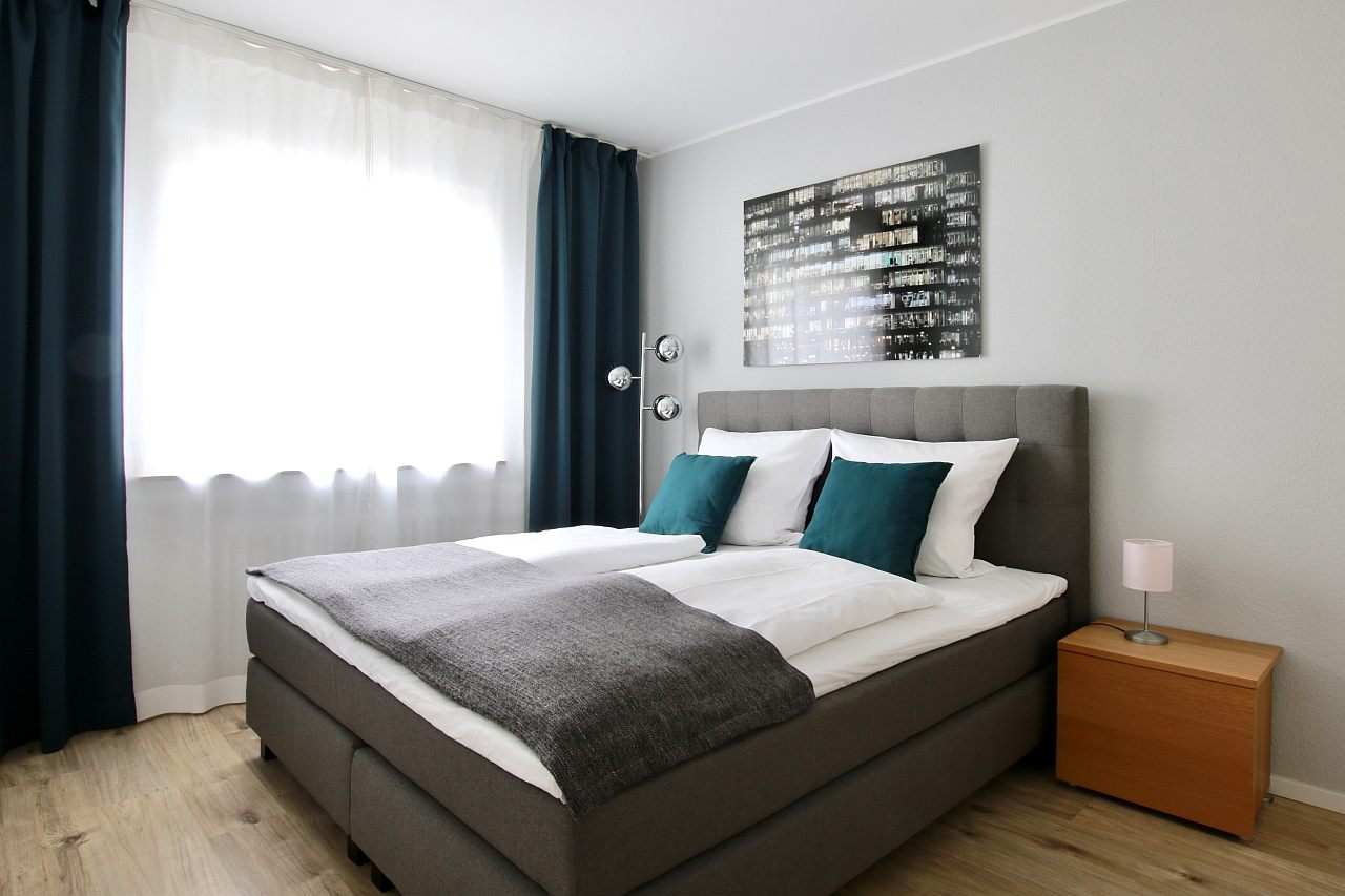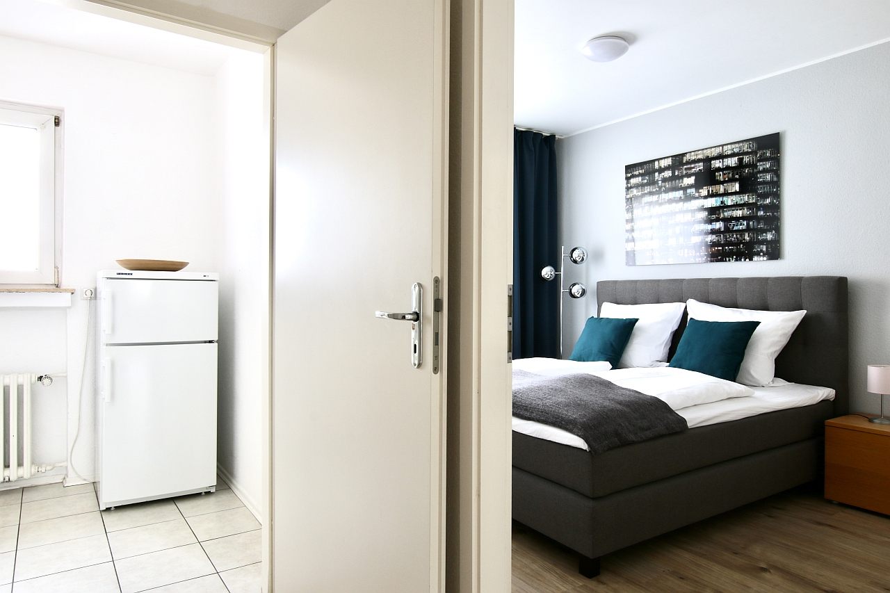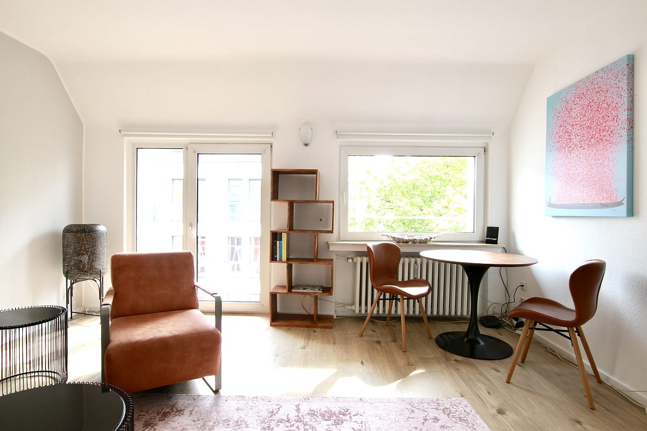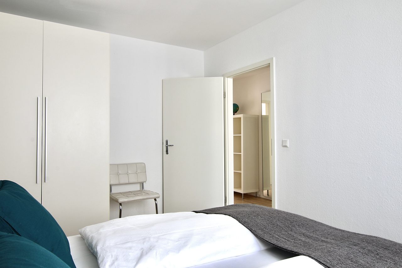 Balkon, Schlafzimmer Bett 1,60 m, Wohnzimmer mit Schlafsofa, WLAN-Internetanschluss inkl., Bettwäsche- und Reinigungsservice auf Anfrage gegen Aufpreis möglich, Mindestmietdauer 6 Monate,