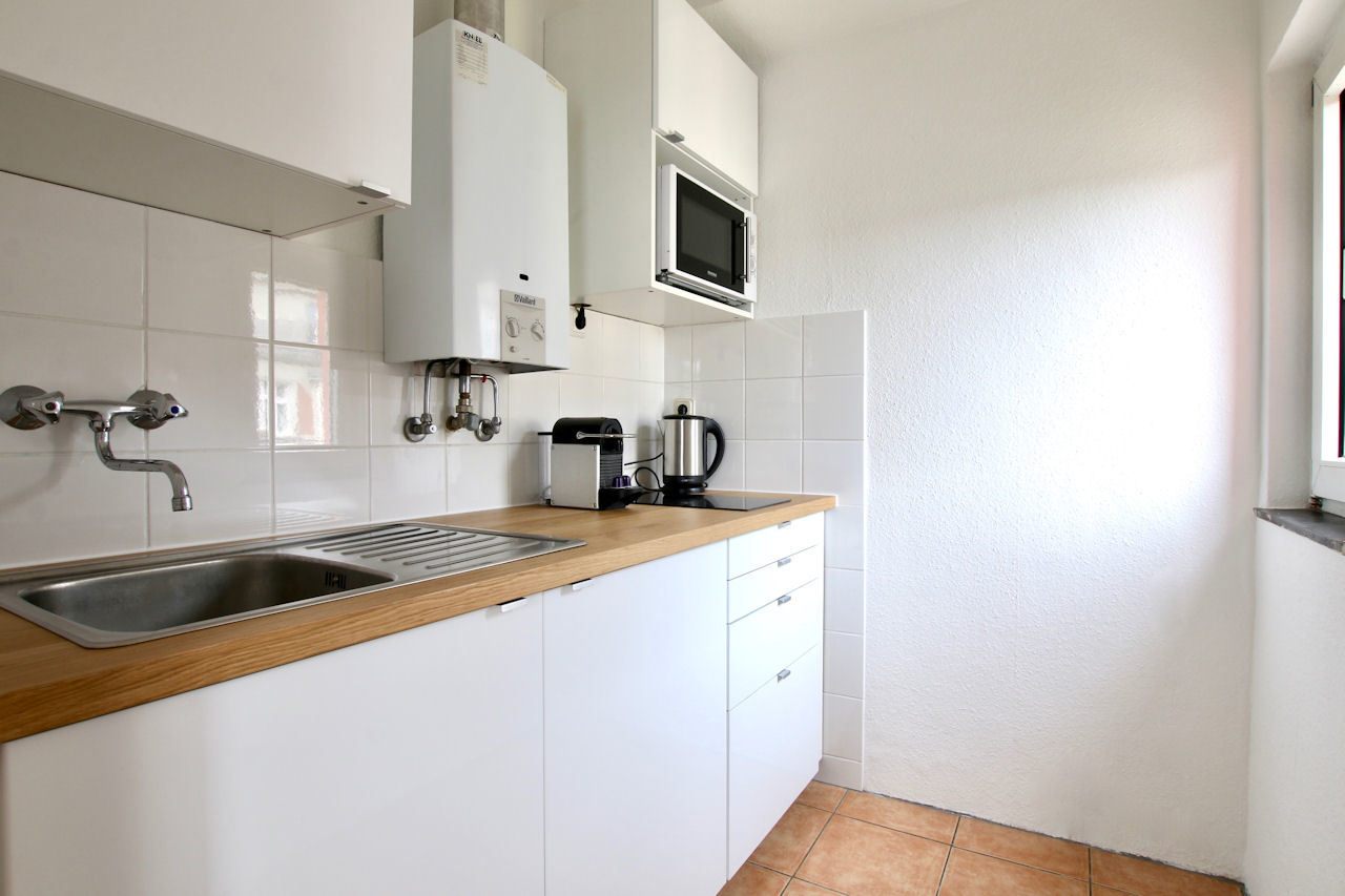 Balkon, Wohn-Schlafzimmer mit 1,40 m Bett, Bettwäsche- und Reinigungsservice auf Anfrage gegen Aufpreis möglich, DSL WLAN-Internetanschluss inkl., Tierhaltung nicht gestattet, Mindestmietdauer 2 Monate,