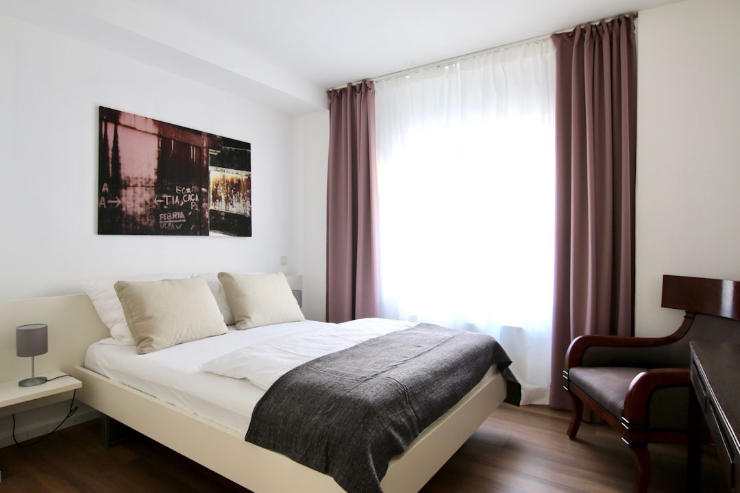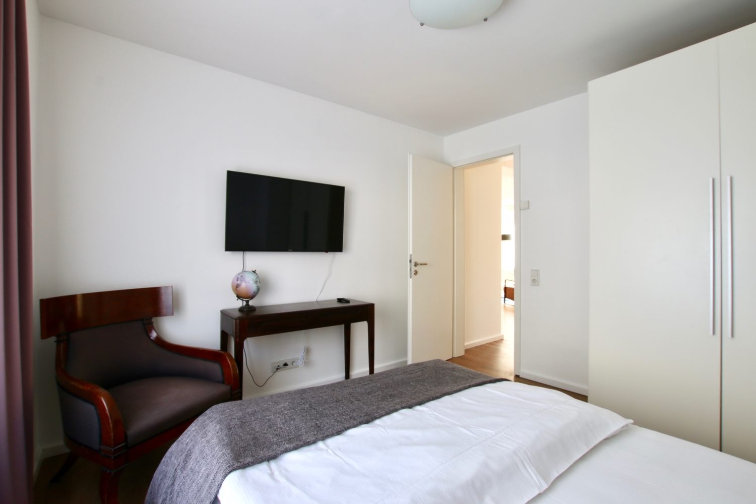 Balkon, Wohnzimmer, Schlafzimmer mit Doppelbett 1,80 m, 2. Schlafzimmer mit franz. Bett 1,40 m, Bettwäsche und Handtücher vorhanden, auf Wunsch Wäsche- und Reinigungsservice gegen Gebühr, inkl. kostenlosem WLAN Internetanschluss, Nichtraucher erwünscht, max. 4 Personen, Mindestmietdauer 6 Monate,