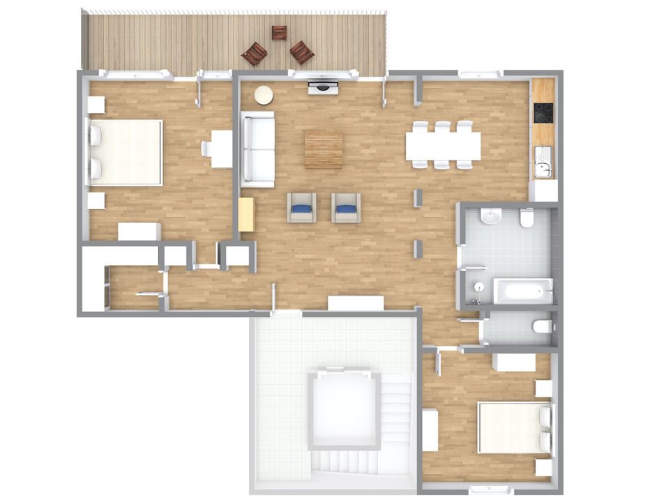Moderne, hochertige Möblierung, Parkett und Fliesenboden, voll ausgestattete integrierte Einbauküche mit Spülmaschine, Badezimmer mit Badewanne und separater Dusche, separates Gäste WC, Kabel-TV, Video, WLAN Internetanschluss, Waschmaschine