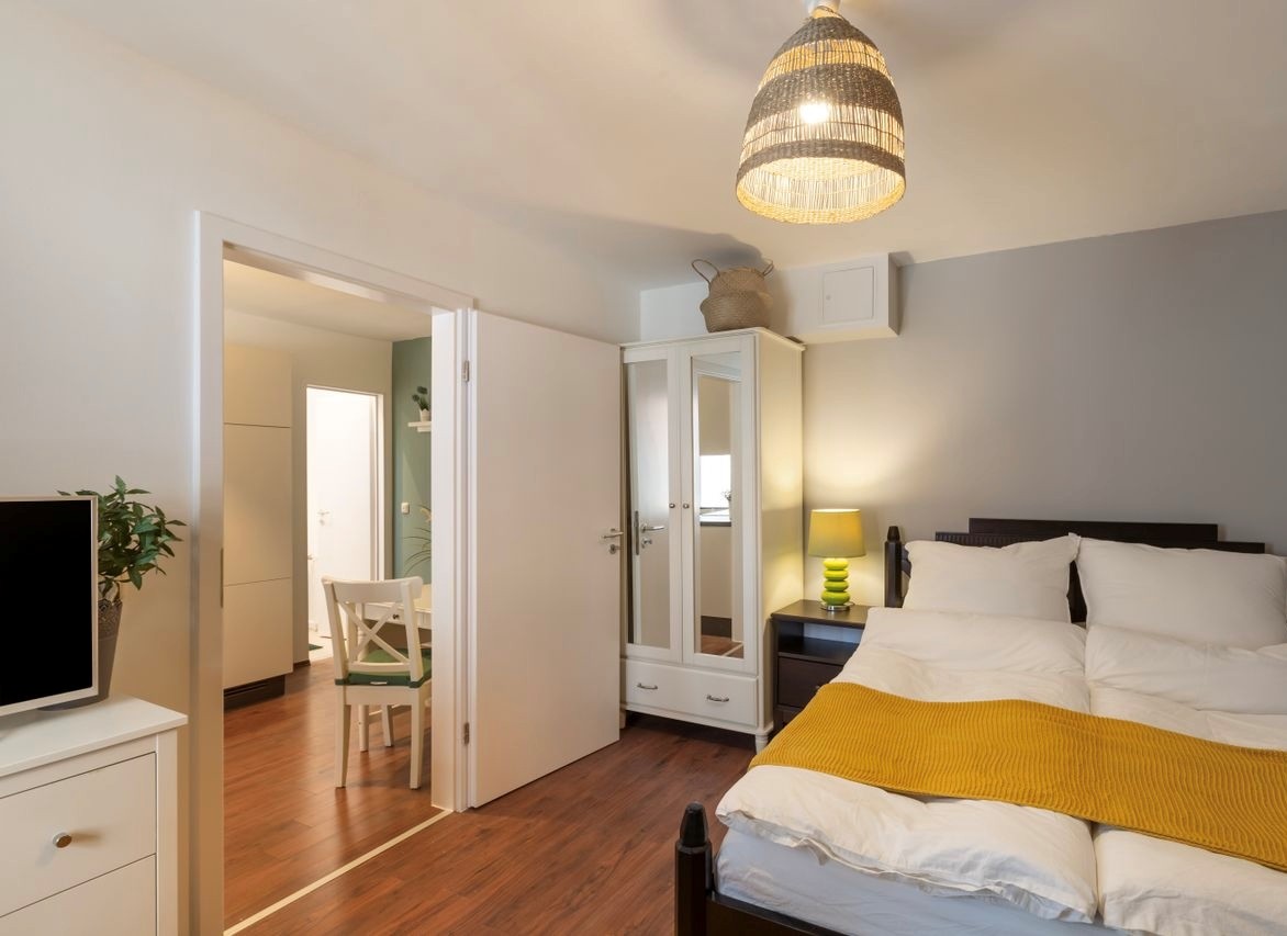 Wohn-/ Schlafzimmer mit franz. Bett 1,40m und Schlafsofa, Bettwäsche und Handtücher vorhanden, inkl. kostenlosem WLAN Internetanschluss, Parkmöglichkeiten vor dem Haus, auf Wunsch 14-tägiger Reinigungs- und Wäschedienst 70,00 EUR/Monat, Nichtraucher, Haustiere nach Vereinbarung, max. 2 Personen, Mietpreis gilt für eine Person, Mehrpersonenbelegung auf Anfrage, Mindestmietdauer 6 Monate,