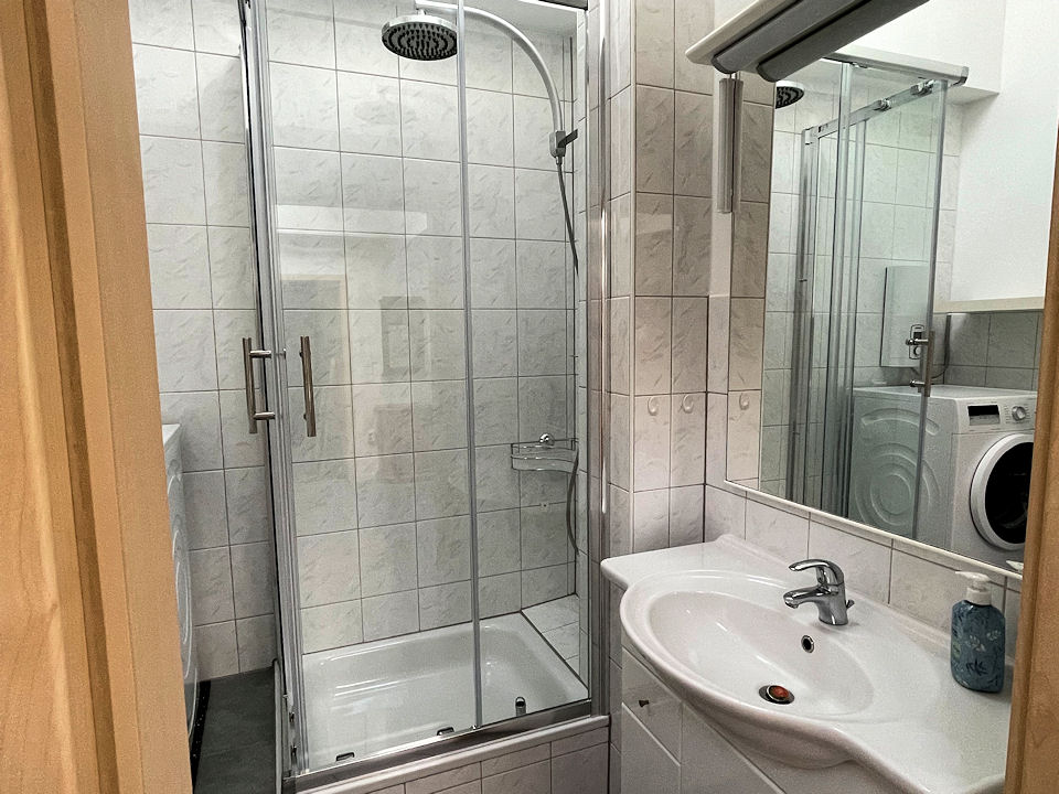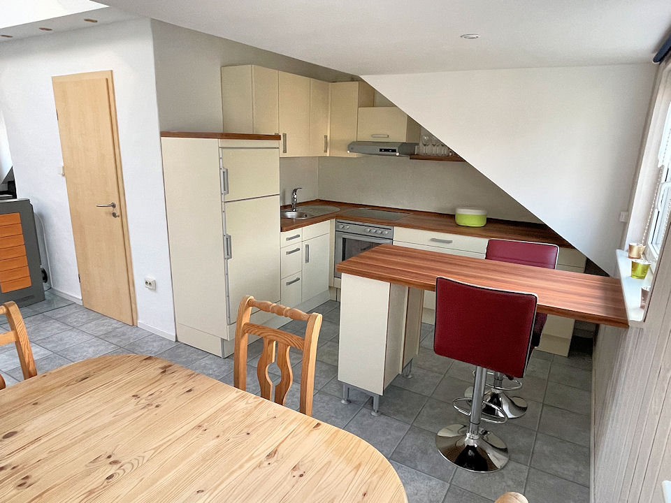Moderne und hochwertige Möblierung, Laminat und Fliesenboden, voll ausgestattete integrierte Einbauküche mit Backofen und Kaffeemaschine, Tageslicht Badezimmer mit Dusche, LED Smart-TV mit SAT-Anschluss, WLAN Internetanschluss, Pelletofen, Waschmaschine im Badezimmer.
